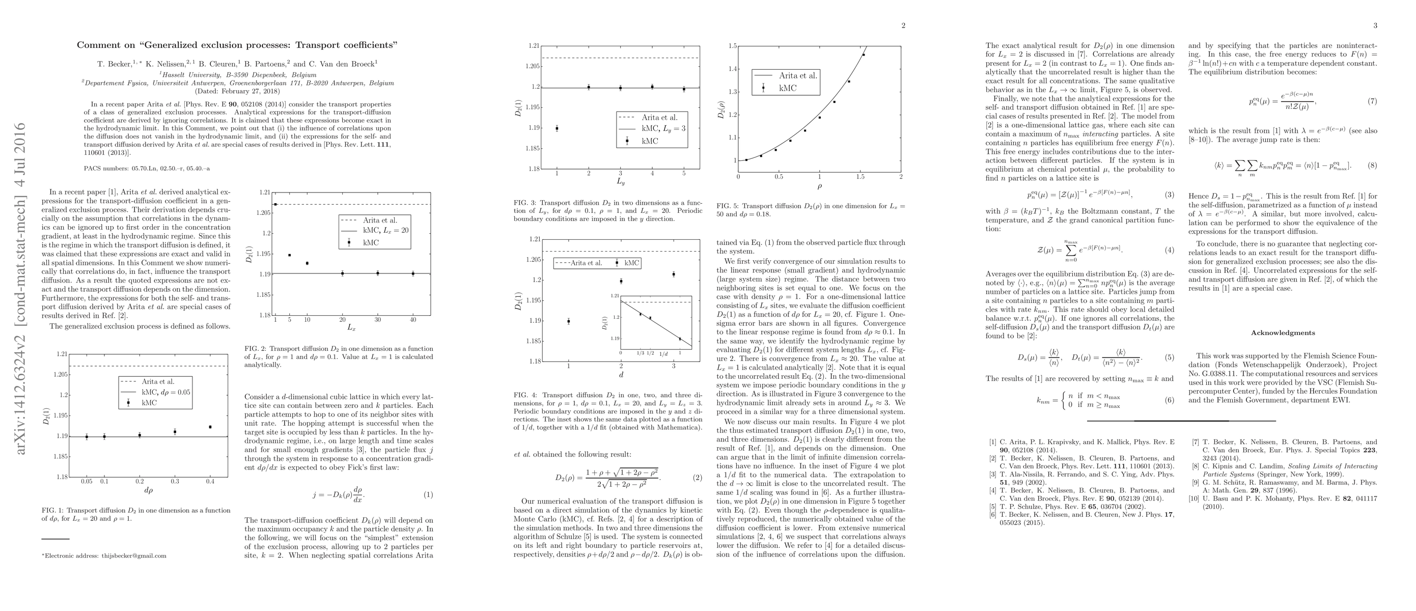 This comment critiques Arita et al.'s analysis of generalized exclusion processes, highlighting that correlations significantly affect diffusion even in the hydrodynamic limit, and that their derived expressions for diffusion are special cases of previously established results.