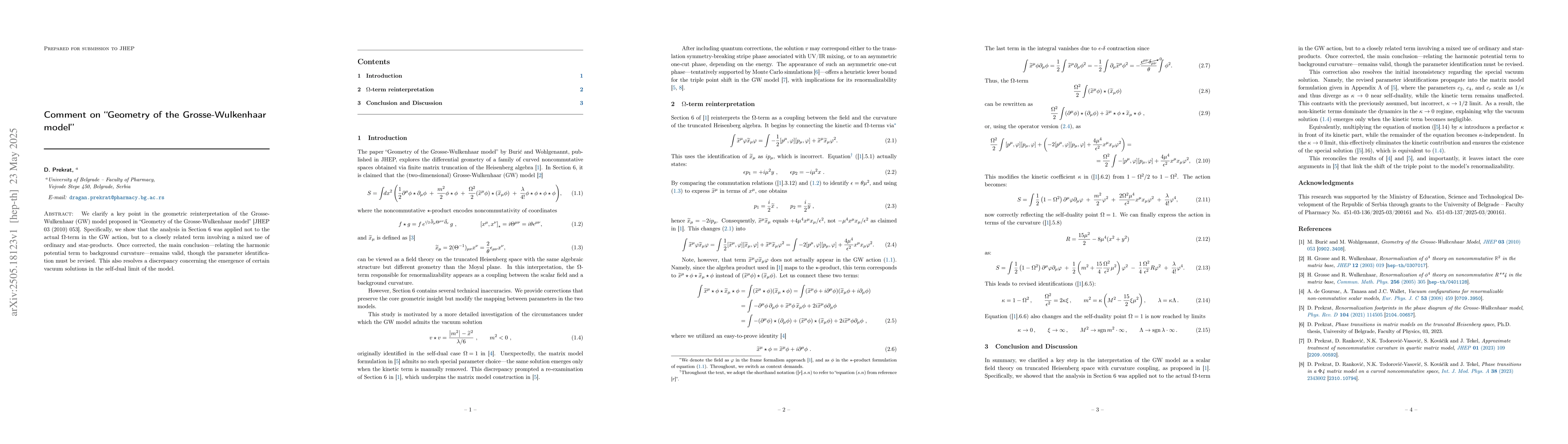 The research clarifies a point in the geometric reinterpretation of the Grosse-Wulkenhaar model, specifically addressing the analysis in Section 6.