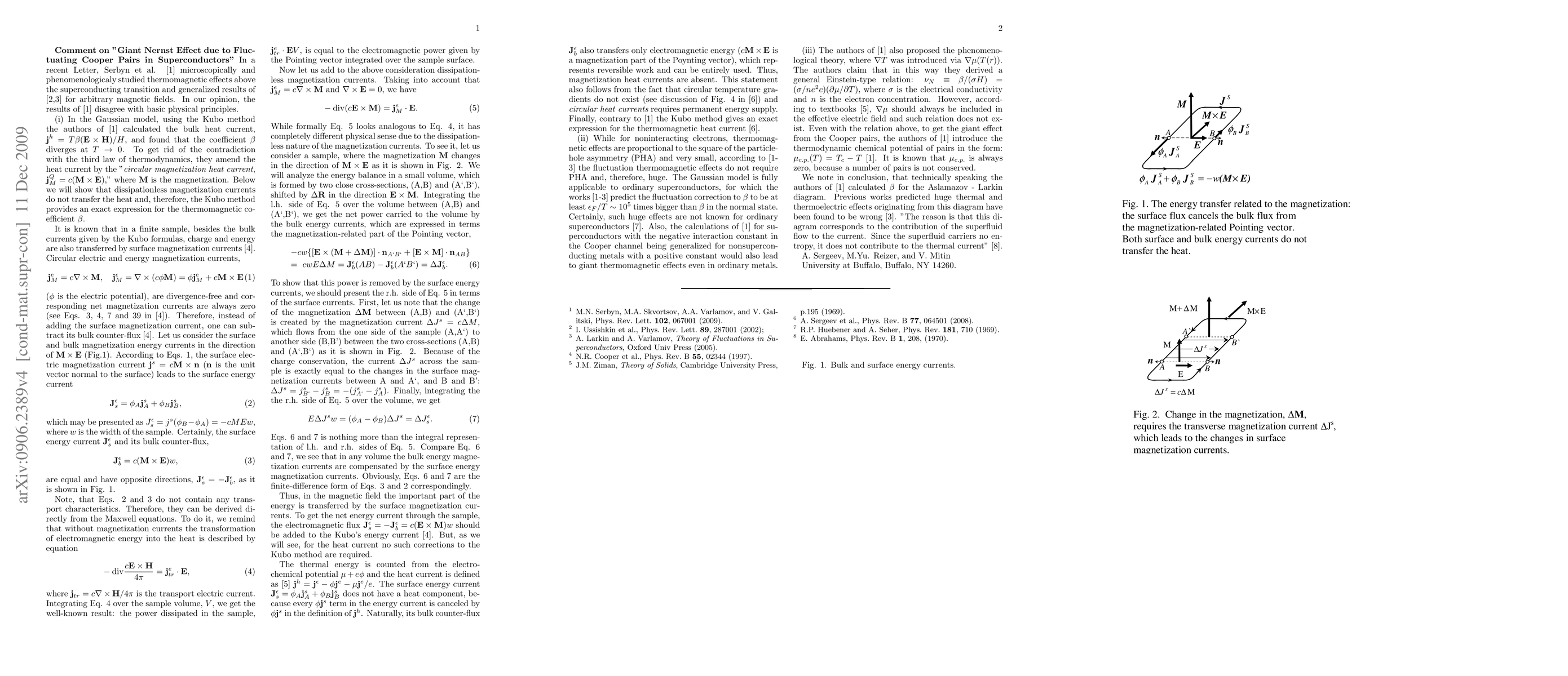 In a recent Letter, Serbyn et al. [A] investigated thermomagnetic effects above the superconducting transition and generalized previous works for arbitrary magnetic fields and temperatures. While the results of [A] have been confirmed in [B], we have strong objections: (i) According to our results [C], the linear response calculation does not require any correction from the magnetization currents; (ii) The result of [A,B] is giant, because unlike the normal Fermi liquid, it is of zero order in the particle-hole asymmetry. Changing the interaction constant in the Cooper channel leads to ridiculously large results even for nonsuperconducting metals; (iii)Derived in [A] the Einstein-type relation for thermomagnetic coefficient contradicts to text-book results. [A] M.N. Serbyn, M.A. Skvortsov, A.A. Varlamov, V. Galitski, Phys. Rev. Lett. 102, 067001 (2009). [B] K. Michaeli and A.M. Finkel'stein, EPL 86, 27007 (2009). [C] A. Sergeev et al., Phys. Rev. B 77, 064501 (2008).