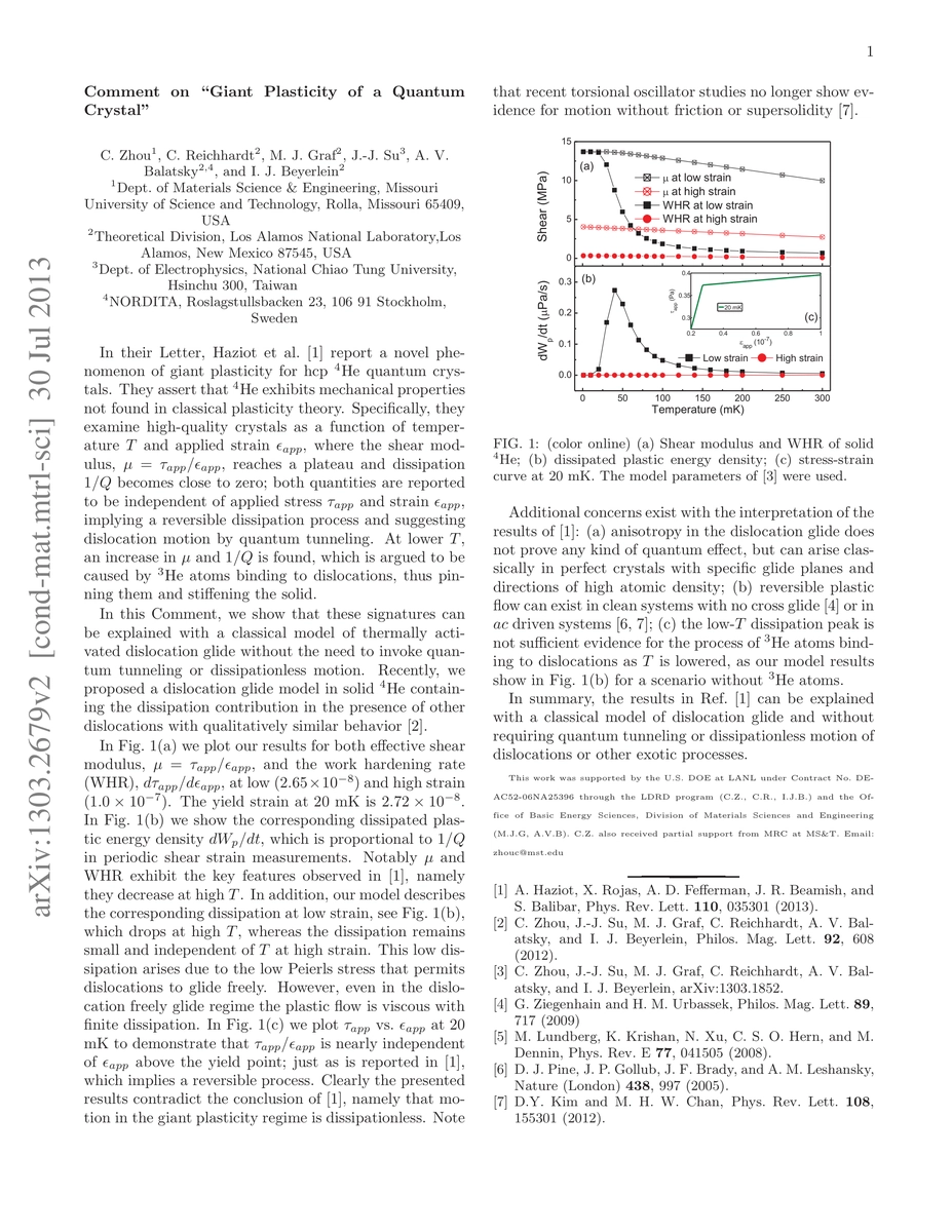 In their Letter, Haziot et al. [Phys. Rev. Lett. 110 (2013) 035301] report a novel phenomenon of giant plasticity for hcp Helium-4 quantum crystals. They assert that Helium-4 exhibits mechanical properties not found in classical plasticity theory. Specifically, they examine high-quality crystals as a function of temperature and applied strain, where the shear modulus reaches a plateau and dissipation becomes close to zero; both quantities are reported to be independent of stress and strain, implying a reversible dissipation process and quantum tunneling. In this Comment, we show that these signatures can be explained with a classical model of thermally activated dislocation glide without the need to invoke quantum tunneling or dissipationless motion. Recently, we proposed a dislocation glide model in solid Helium-4 containing the dissipation contribution in the presence of other dislocations with qualitatively similar behavior [Zhou et al., Philos. Mag. Lett. 92 (2012) 608].