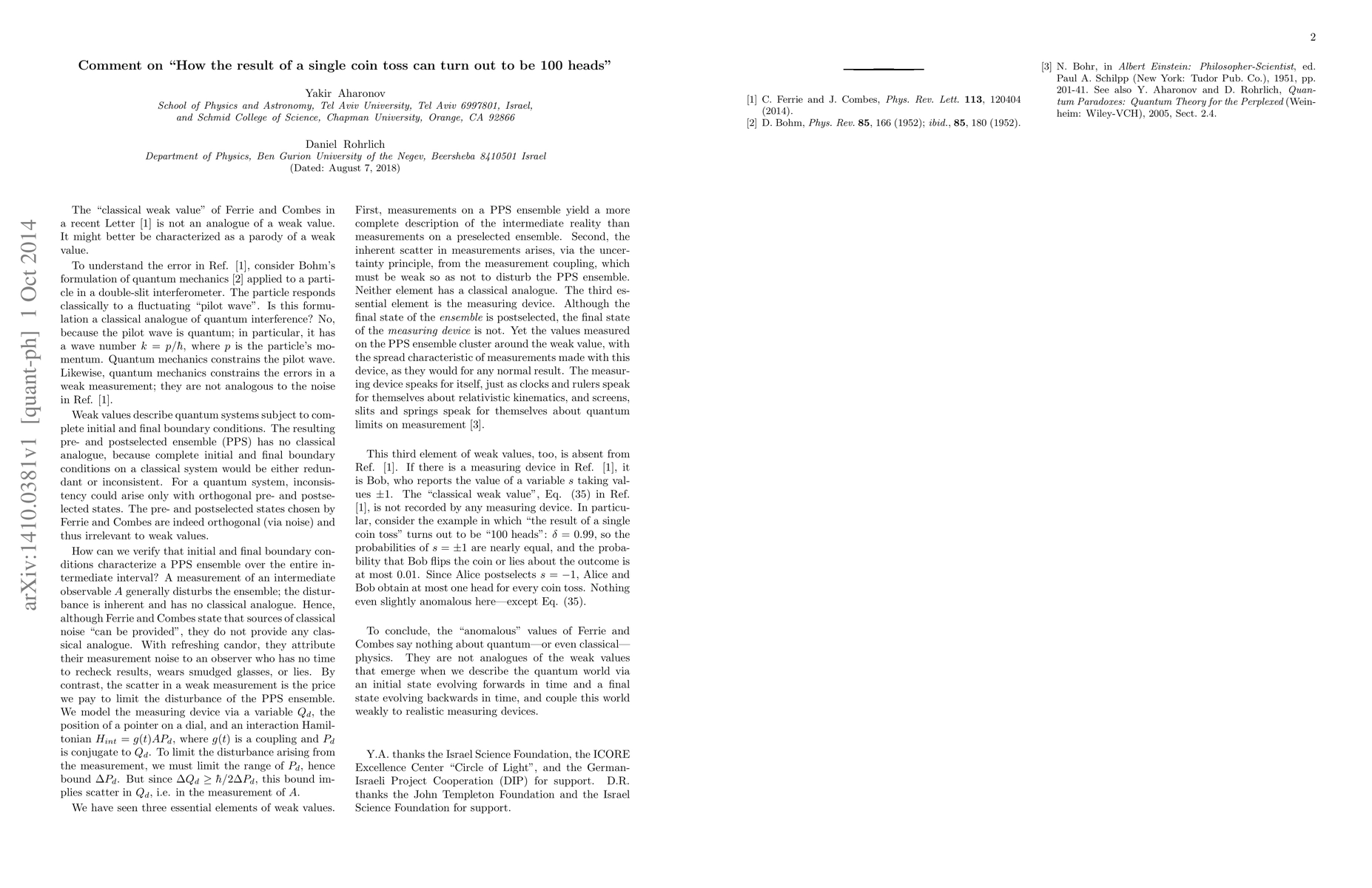 A recent paper critiques the 'anomalous' coin toss results, suggesting they don't relate to quantum physics or classical unpredictability. The findings indicate the values are not weakly measured outcomes but rather a result of the measurement process itself.