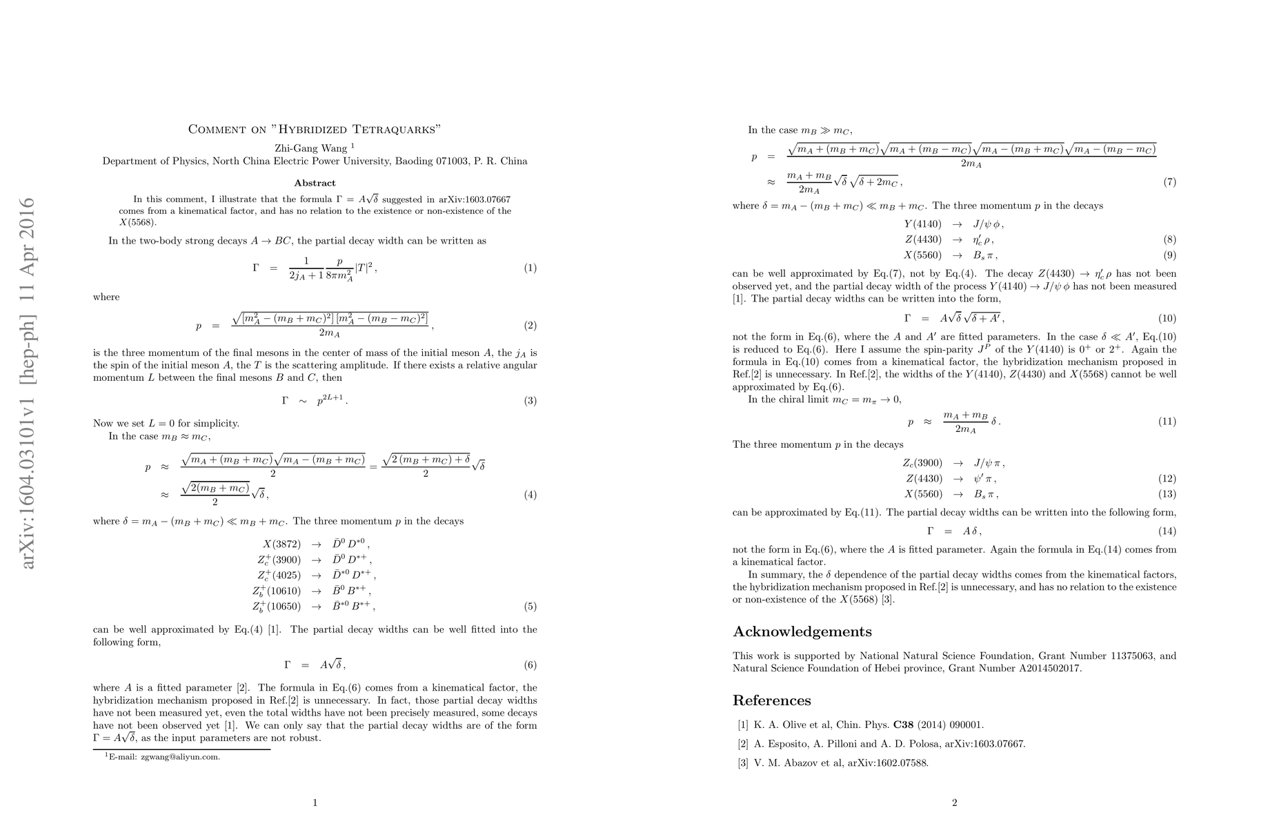 In this comment, I illustrate that the formula $\Gamma=A\sqrt{\delta}$ suggested in arXiv:1603.07667 comes from a kinematical factor, and has no relation to the existence or non-existence of the $X(5568)$.