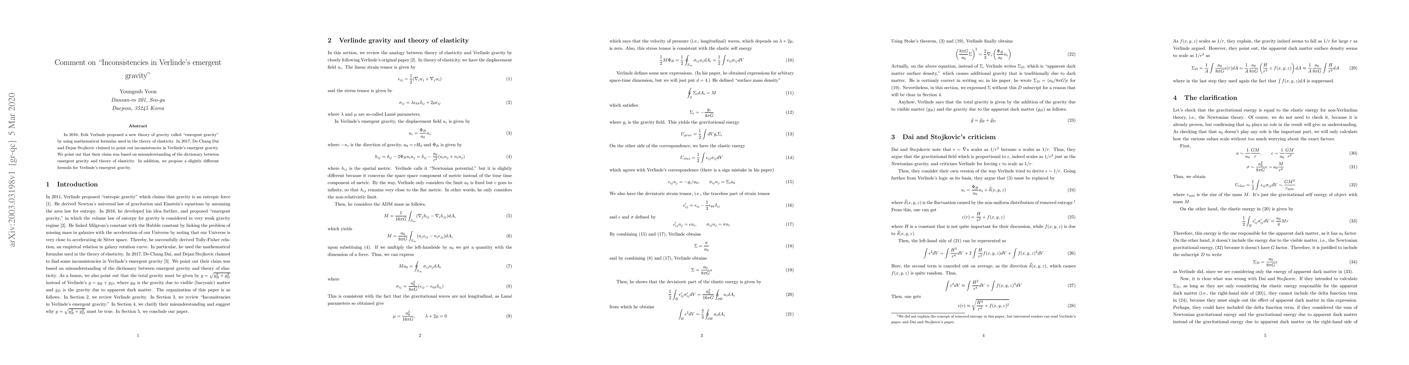This paper critiques De-Chang Dai and Dejan Stojkovic's claims of inconsistencies in Erik Verlinde's emergent gravity theory, arguing that their objections stem from a misunderstanding of the mathematical analogies used. The authors propose an alternative formula for Verlinde's emergent gravity.