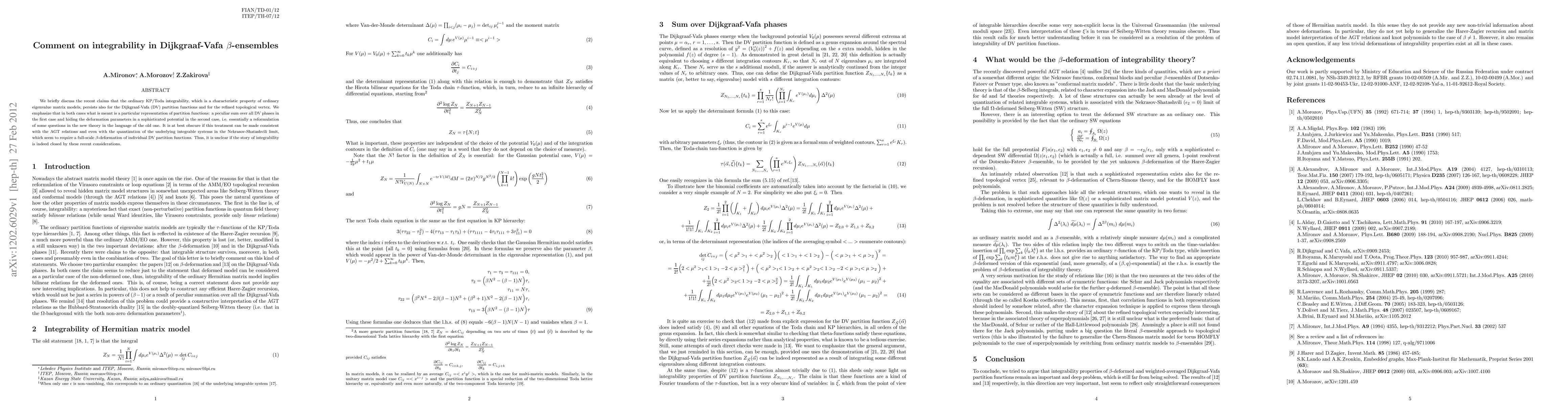We briefly discuss the recent claims that the ordinary KP/Toda integrability, which is a characteristic property of ordinary eigenvalue matrix models, persists also for the Dijkgraaf-Vafa (DV) partition functions and for the refined topological vertex. We emphasize that in both cases what is meant is a particular representation of partition functions: a peculiar sum over all DV phases in the first case and hiding the deformation parameters in a sophisticated potential in the second case, i.e. essentially a reformulation of some questions in the new theory in the language of the old one. It is at best obscure if this treatment can be made consistent with the AGT relations and even with the quantization of the underlying integrable systems in the Nekrasov-Shatashvili limit, which seem to require a full-scale beta-deformation of individual DV partition functions. Thus, it is unclear if the story of integrability is indeed closed by these recent considerations.