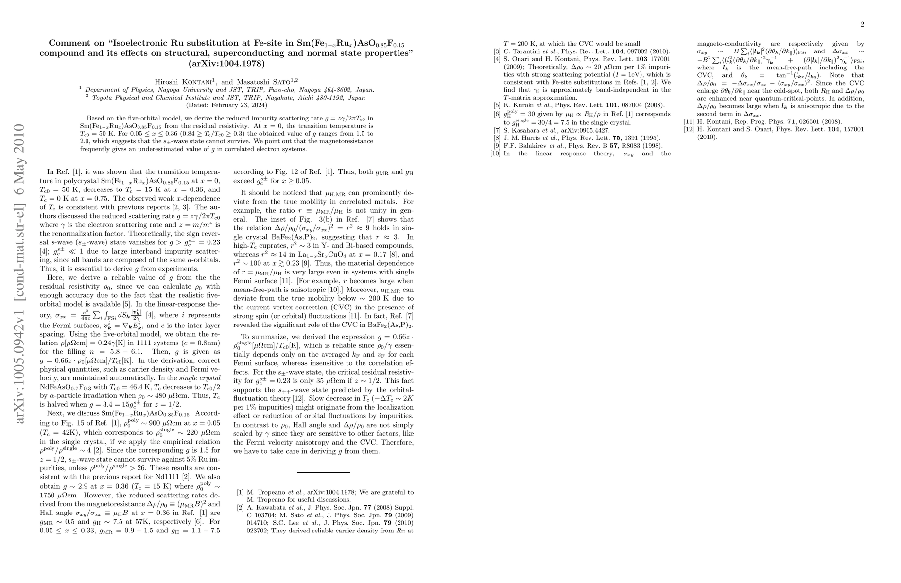 Based on the five-orbital model, we derive the reduced impurity scattering