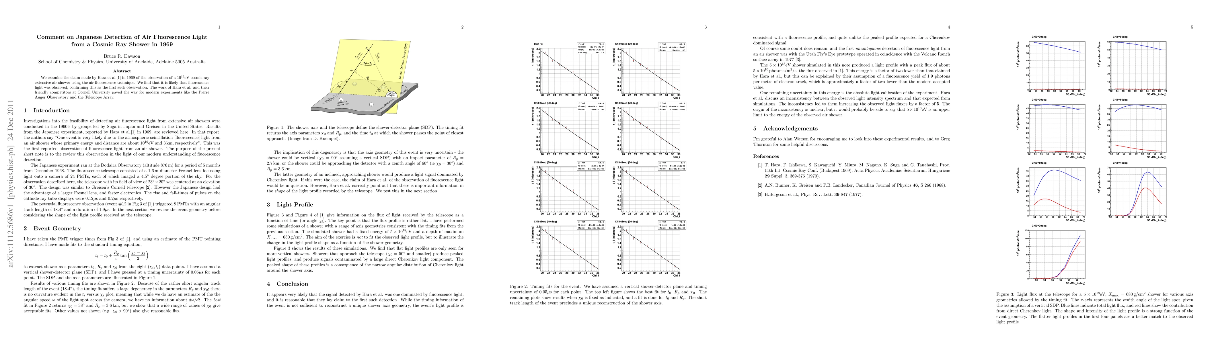 This paper re-evaluates the 1969 claim by Hara et al. of observing a 10^19 eV cosmic ray shower via air fluorescence light. It confirms the observation, marking it as the first of its kind, and acknowledges the significant impact of this work on modern cosmic ray experiments like the Pierre Auger Observatory and the Telescope Array.