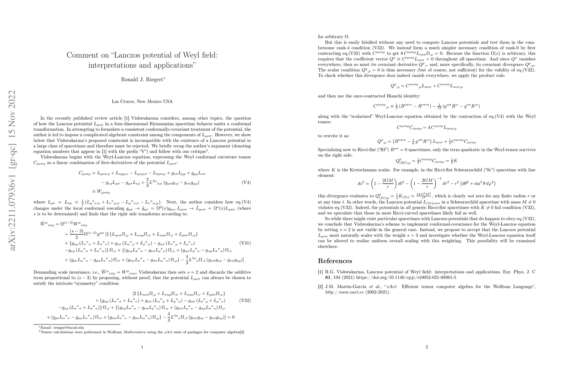 Summary: The paper refutes Vishwakarma's proposal to achieve conformal covariance for the Weyl-Lanczos equation, demonstrating its nonviability. This finding has implications for the theoretical framework of Weyl fields.