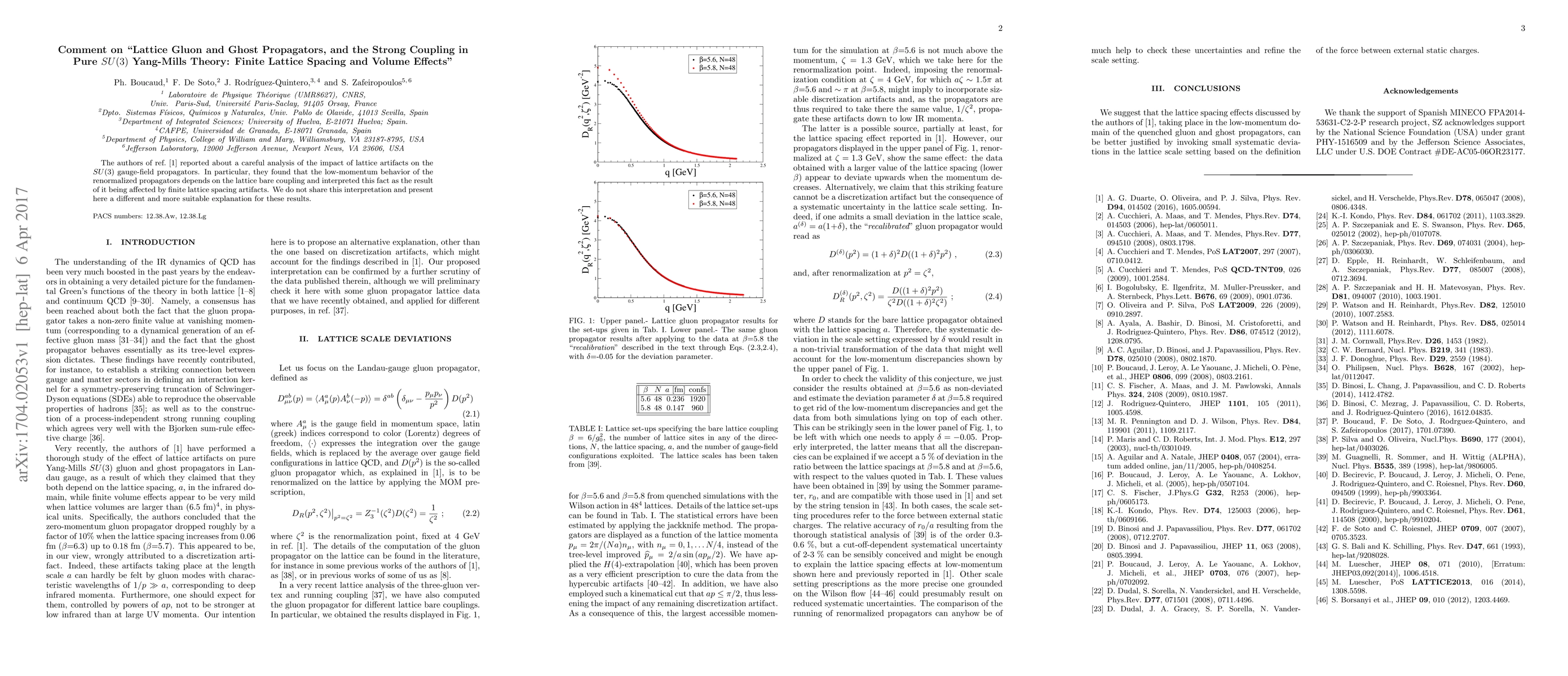 This paper critiques the findings of a previous study on lattice gluon and ghost propagators in pure $SU(3)$ Yang-Mills theory, arguing that the observed low-momentum behavior is not due to lattice spacing artifacts but rather suggests a different underlying explanation.