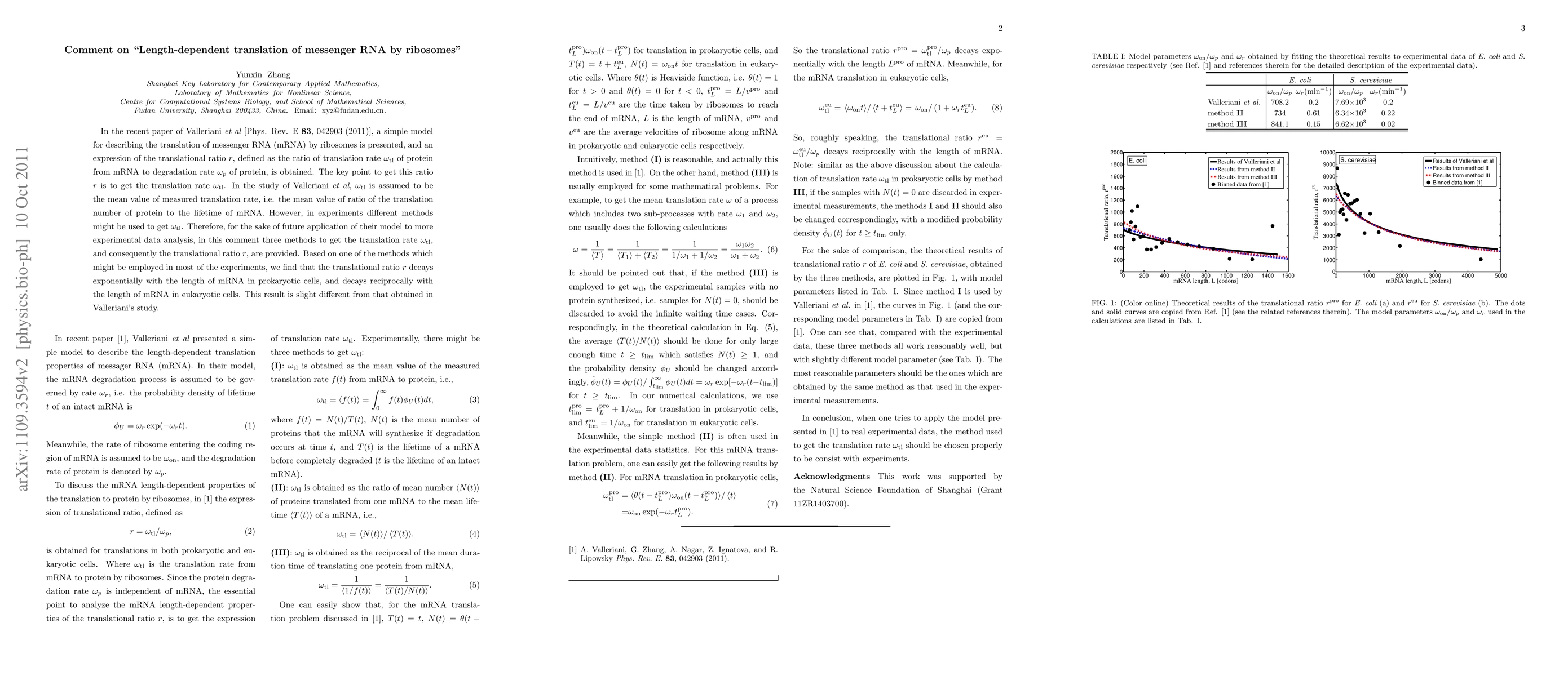Researchers discuss the limitations of a model for mRNA translation by ribosomes and propose alternative methods to estimate the translation rate, finding that the translational ratio varies with mRNA length in prokaryotic and eukaryotic cells.