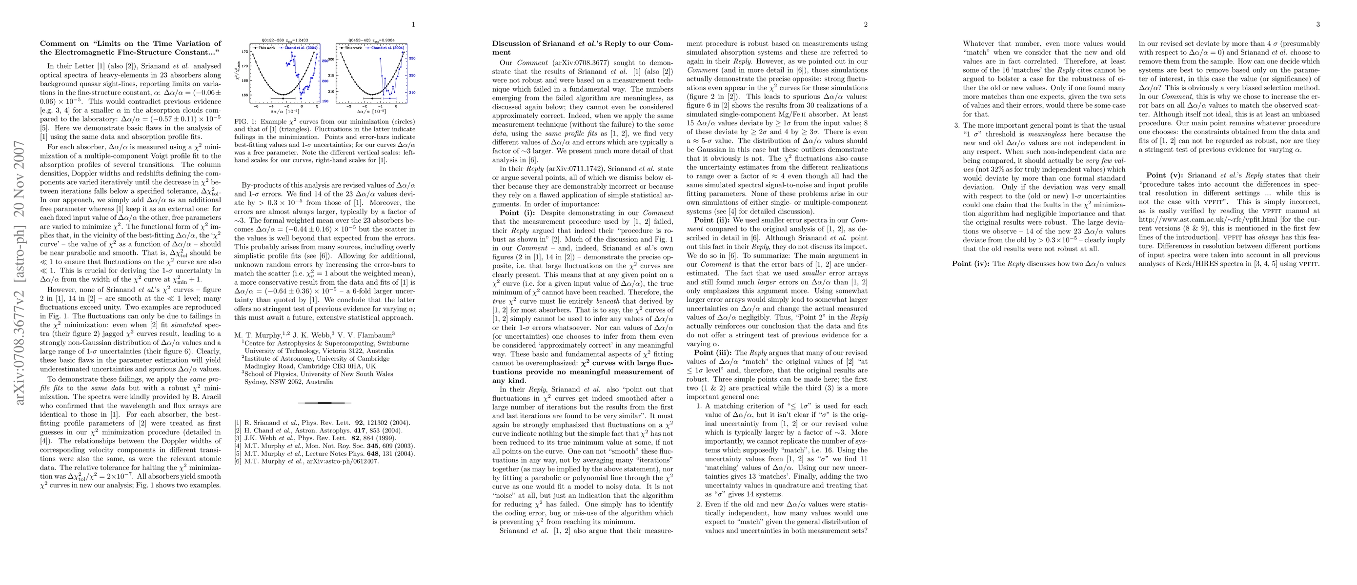 In their Letter [Phys. Rev. Lett. 92, 121302 (2004)] (also [Astron. Astrophys. 417, 853 (2004)]), Srianand et al. analysed optical spectra of heavy-element species in 23 absorption systems along background quasar sight-lines, reporting limits on relative variations in the fine-structure constant: da/a=(-0.06+/-0.06) x 10^{-5}. Here we demonstrate basic flaws in their analysis, using the same data and absorption profile fits, which led to spurious values of da/a and significantly underestimated uncertainties. We conclude that these data and fits offer no stringent test of previous evidence for a varying alpha. In their Reply (arXiv:0711.1742) to this Comment, Srianand et al. state or argue several points regarding their original analysis and our new analysis. We discuss these points here, dismissing all of them because they are demonstrably incorrect or because they rely on a flawed application of simple statistical arguments.