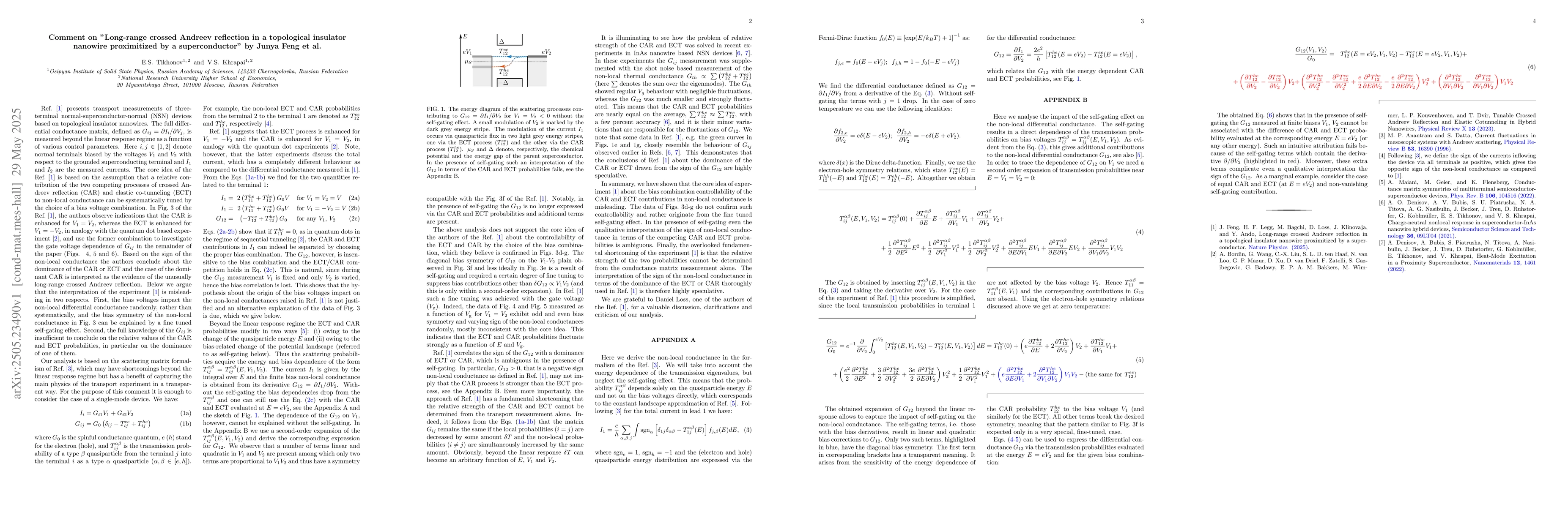 The paper challenges the interpretation of a topological insulator nanowire experiment, arguing that bias voltages impact conductance randomly and cannot conclusively determine the dominance of crossed-Andreev or elastic cotunneling probabilities.