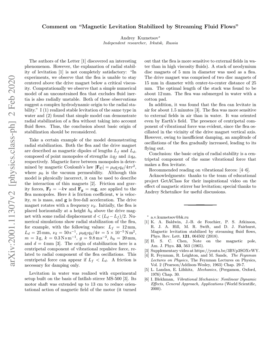 Summary: The paper demonstrates that radial stability in magnetic levitation can be attributed to the centripetal component of the vibrational force responsible for the "flea" levitation phenomenon. This insight provides a fundamental understanding of the stability mechanisms in streaming fluid flows.