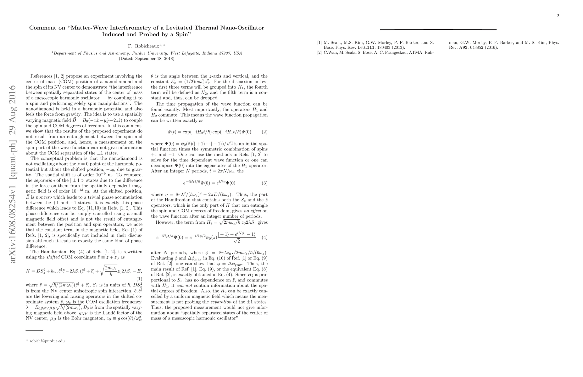In this comment, we agree with the formulas derived in Refs. [1,2] but show that the results are not due to "interference between spatially separated states of the center of mass of a mesoscopic harmonic oscillator".