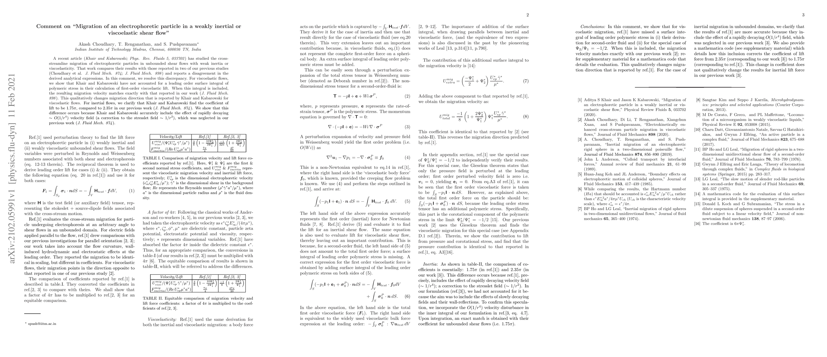 Researchers resolved a discrepancy in analytical expressions for electrophoretic particle migration in weakly inertial or viscoelastic shear flows, correcting earlier findings that matched their own work.