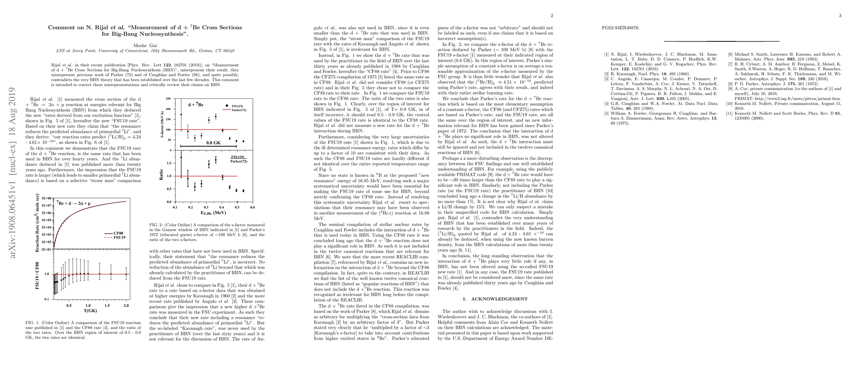 Rijal, et al. in their recent publication [Phys. Rev. Lett {\bf 122}, 182701 (2019), arXiv:1808.07893], on "Measurement of d + $^7$Be Cross Sections for Big-Bang Nucleosynthesis (BBN)", misrepresent their result, they misrepresent previous work of Parker (72) and of Caughlan and Fowler (88), and quite possibly, contradicts the very BBN theory that has been established over the last few decades. This comment is intended to correct these misrepresentations and critically review their claims on BBN.