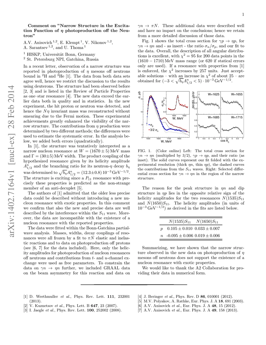 It is shown that the narrow structure observed in the excitation function of $\eta$ photoproduction off the Neutron originates from the interference of the two $S_{11}$ resonances.