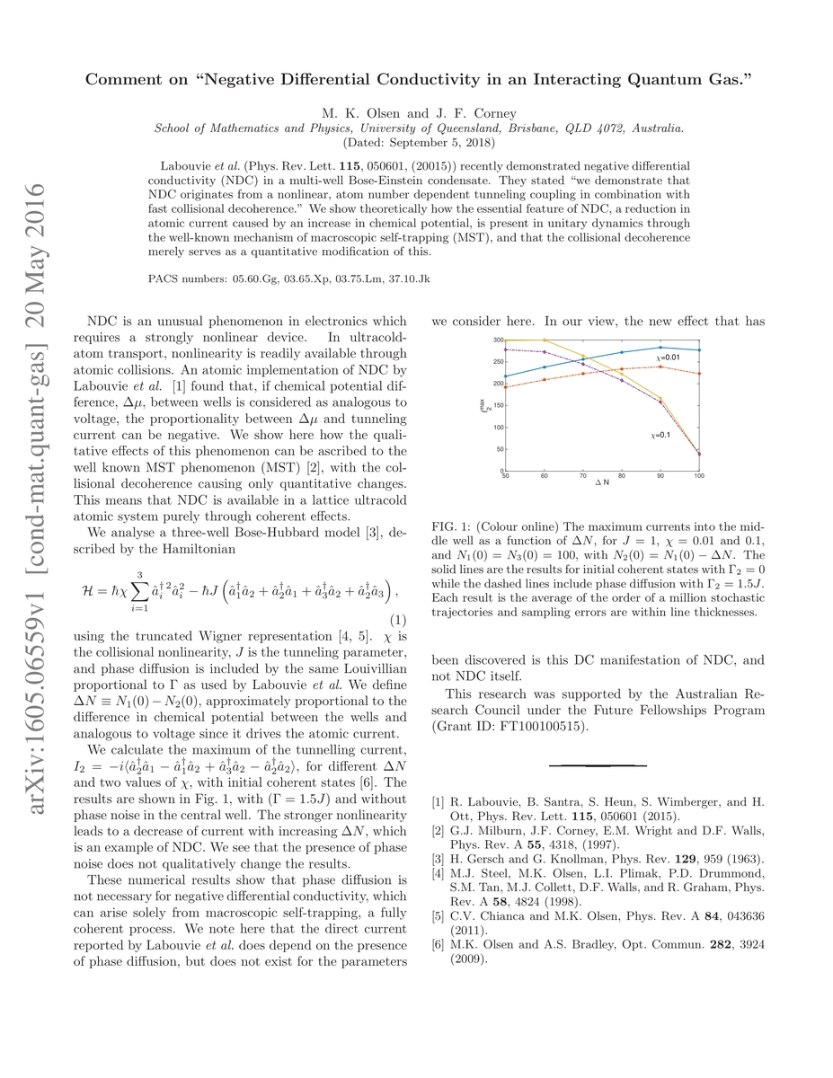 Labouvie \etal (\prl {\bf 115}, 050601, (20015)) recently demonstrated negative differential conductivity (NDC) in a multi-well Bose-Einstein condensate. They stated "we demonstrate that NDC originates from a nonlinear, atom number dependent tunneling coupling in combination with fast collisional decoherence." We show theoretically how the essential feature of NDC, a reduction in atomic current caused by an increase in chemical potential, is present in unitary dynamics through the well-known mechanism of macroscopic self-trapping (MST), and that the collisional decoherence merely serves as a quantitative modification of this.