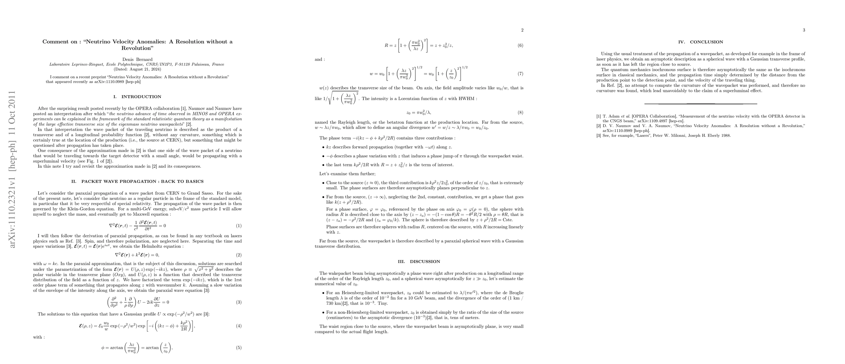 I comment on a recent preprint "Neutrino Velocity Anomalies: A Resolution without a Revolution" that appeared recently as arXiv:1110.0989 [hep-ph]