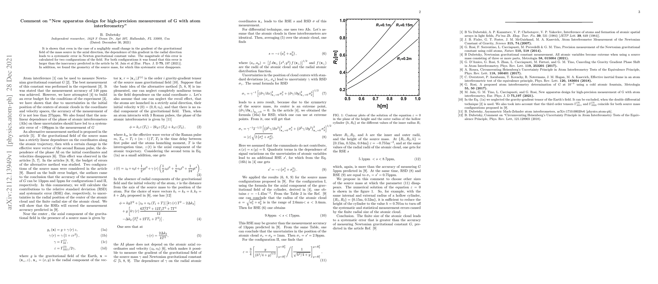 It is shown that even in the case of a negligibly small change in the gradient of the gravitational field of the mass source in the axial direction, the dependence of this gradient in the radial direction leads to a systematic error in Newton gravitational constant value. The magnitude of this error is calculated for two configurations of the field. For both configurations it was found that this error is larger than the inaccuracy predicted in the article by M. Jain et al [Eur. Phys. J. D 75, 197 (2021)]. In addition, we found the geometry of the source mass, for which this systematic error disappears.