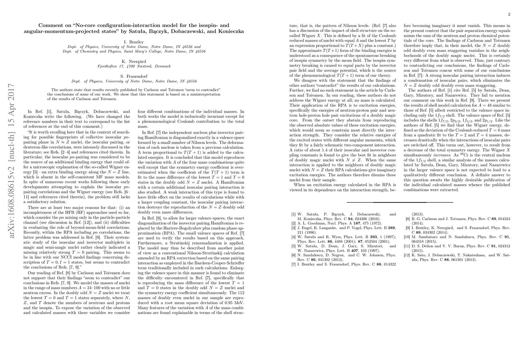 The authors state that results recently published by Carlsson and Toivanen "seem to contradict" the conclusions of some of our work. We show that this statement is based on a misinterpretation of the results of Carlsson and Toivanen.