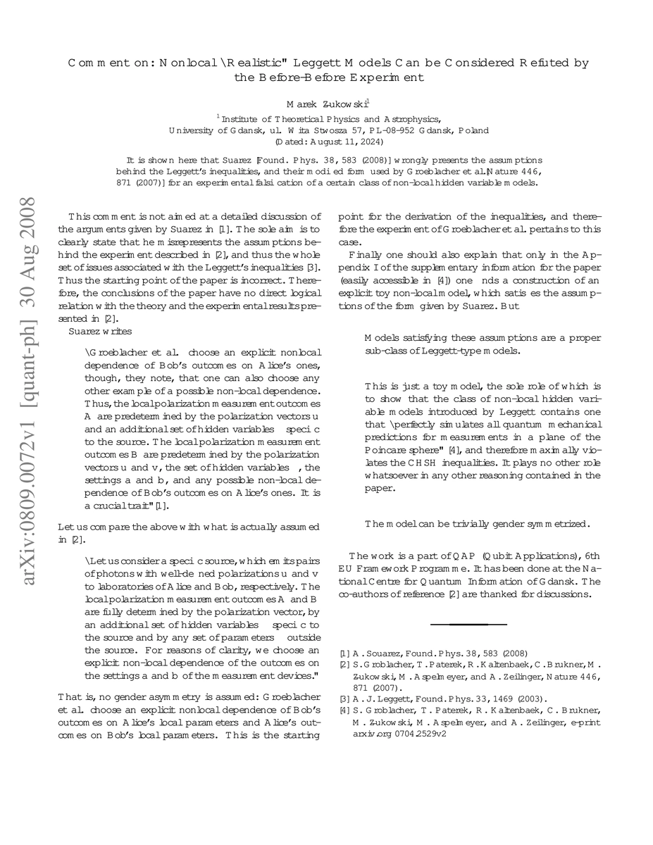A paper critiques Suarez's interpretation of Leggett's inequalities, highlighting a mistake in assuming the model's assumptions. This oversight undermines the experimental attempt to falsify non-local hidden variable models.