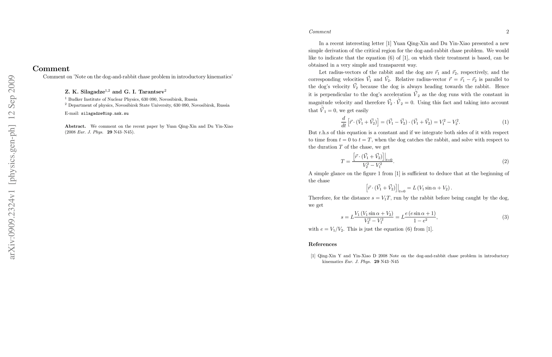We comment on the recent paper by Yuan Qing-Xin and Du Yin-Xiao (Eur. J. Phys. 29 (2008) N43-N45).