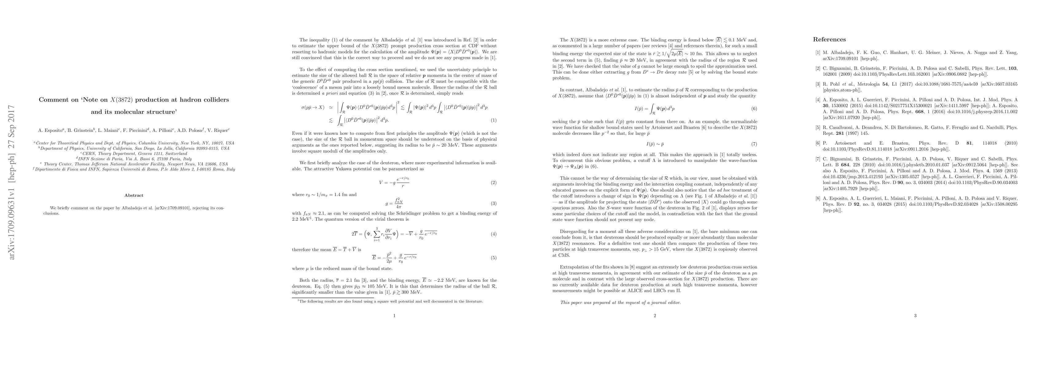 This comment disputes Albaladejo et al.'s findings on X(3872) production and molecular structure at hadron colliders, challenging their conclusions without providing an alternative analysis.