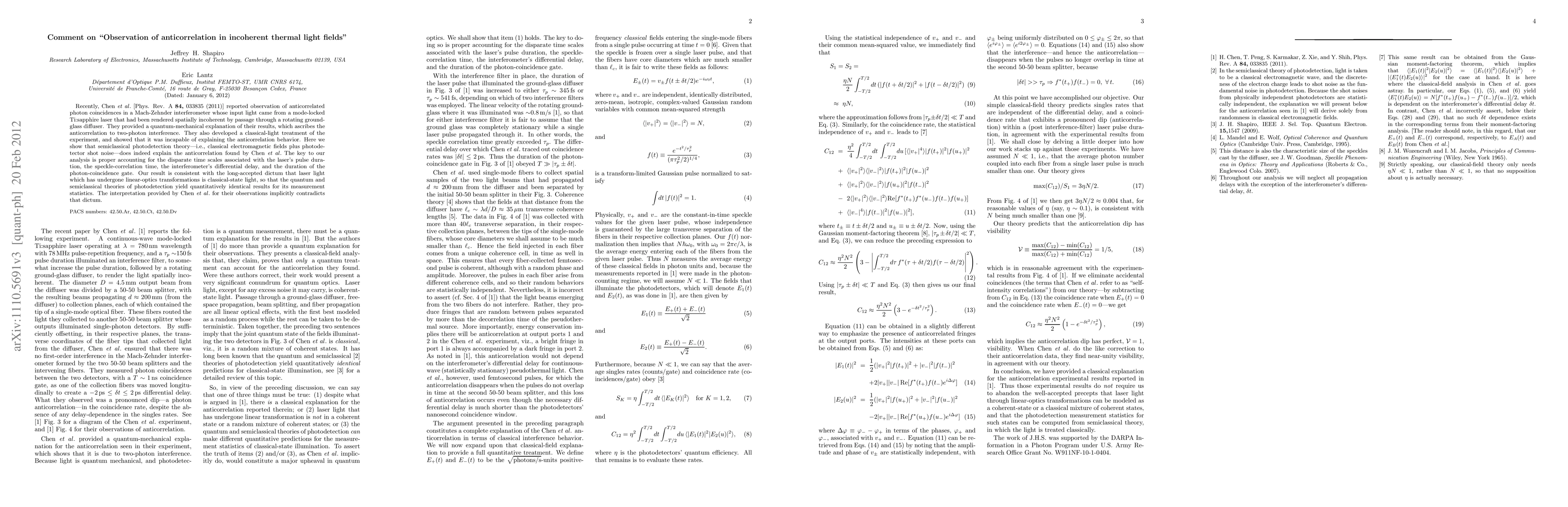 Recently, Chen \em et al \rm.\ [Phys. Rev. A 84, 033835 (2011)] reported observation of anticorrelated photon coincidences in a Mach-Zehnder interferometer whose input light came from a mode-locked Ti:sapphire laser that had been rendered spatially incoherent by passage through a rotating ground-glass diffuser. They provided a quantum-mechanical explanation of their results, which ascribes the anticorrelation to two-photon interference. They also developed a classical-light treatment of the experiment, and showed that it was incapable of explaining the anticorrelation behavior. Here we show that semiclassical photodetection theory---i.e., classical electromagnetic fields plus photodetector shot noise---does indeed explain the anticorrelation found by Chen \em et al \rm.\ The key to our analysis is proper accounting for the disparate time scales associated with the laser's pulse duration, the speckle-correlation time, the interferometer's differential delay, and the duration of the photon-coincidence gate. Our result is consistent with the long-accepted dictum that laser light which has undergone linear-optics transformations is classical-state light, so that the quantum and semiclassical theories of photodetection yield quantitatively identical results for its measurement statistics. The interpretation provided by Chen \em et al \rm. for their observations implicitly contradicts that dictum