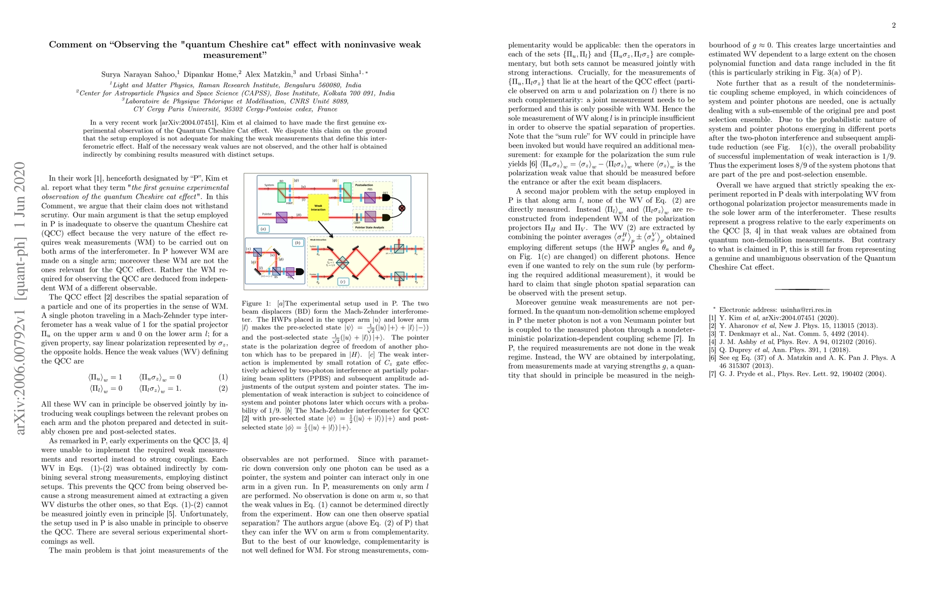 In a very recent work [arXiv:2004.07451], Kim et al claimed to have made the first genuine experimental observation of the Quantum Cheshire Cat effect. We dispute this claim on the ground that the setup employed is not adequate for making the weak measurements that define this interferometric effect. Half of the necessary weak values are not observed, and the other half is obtained indirectly by combining results measured with distinct setups.