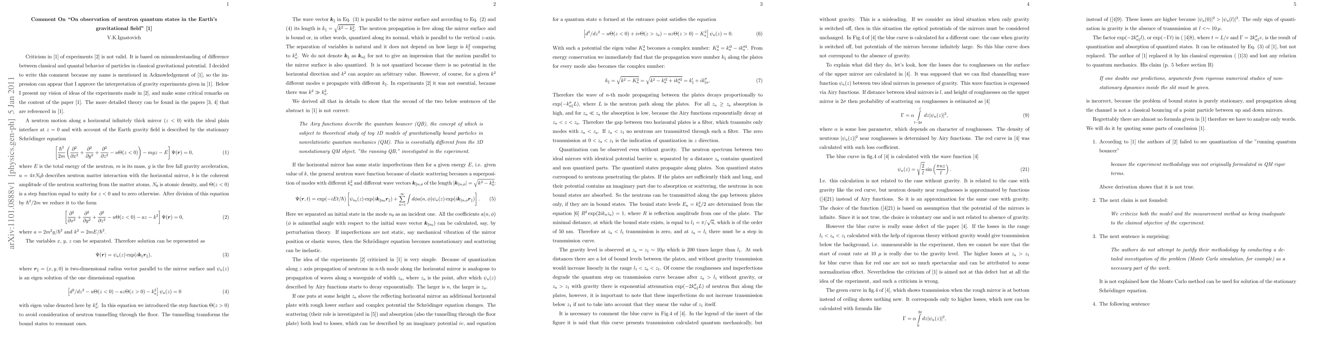 Researchers dispute a 2010 study claiming to observe bound levels of neutrons in Earth's gravitational field, arguing that the experiment was flawed.