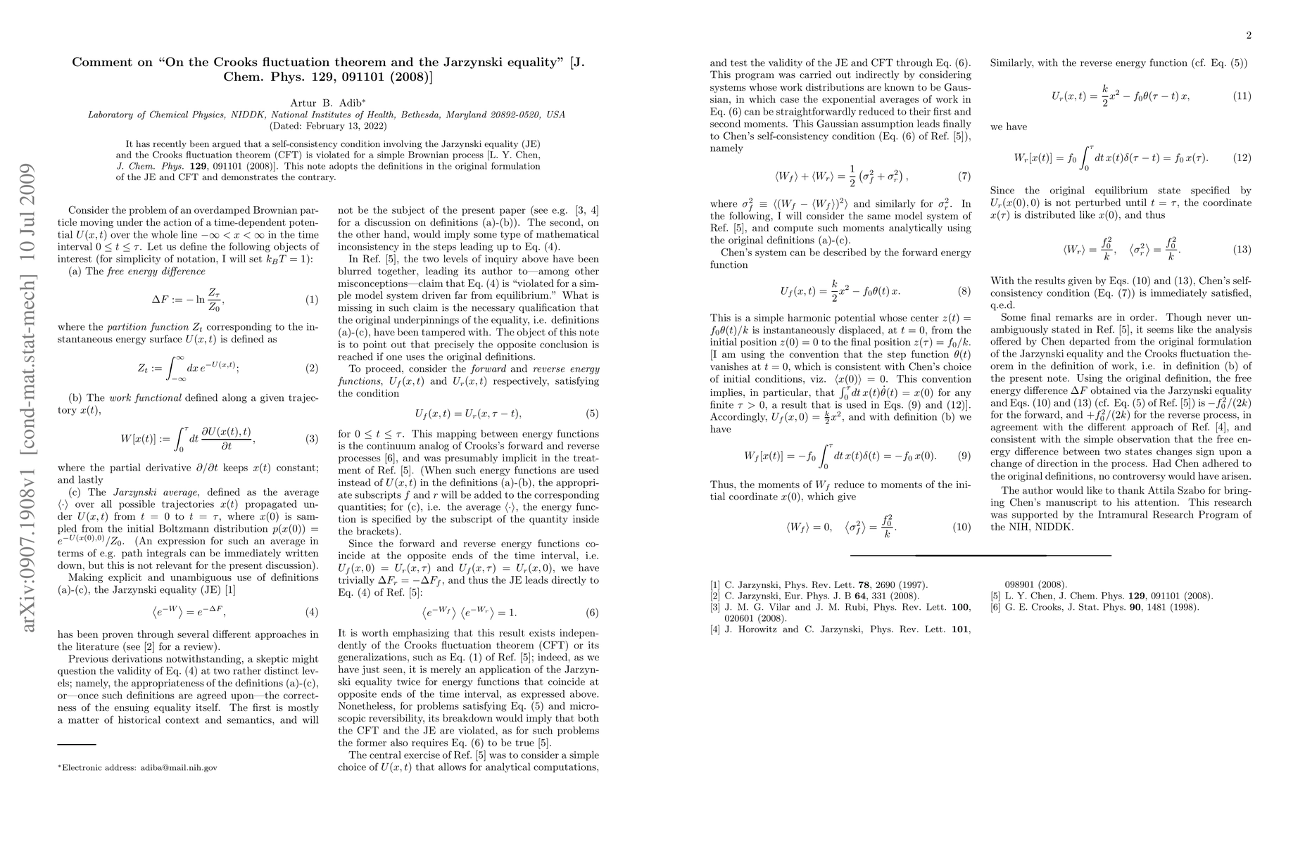 It has recently been argued that a self-consistency condition involving the Jarzynski equality (JE) and the Crooks fluctuation theorem (CFT) is violated for a simple Brownian process [L. Y. Chen, J. Chem. Phys. 129, 091101 (2008)]. This note adopts the definitions in the original formulation of the JE and CFT and demonstrates the contrary.