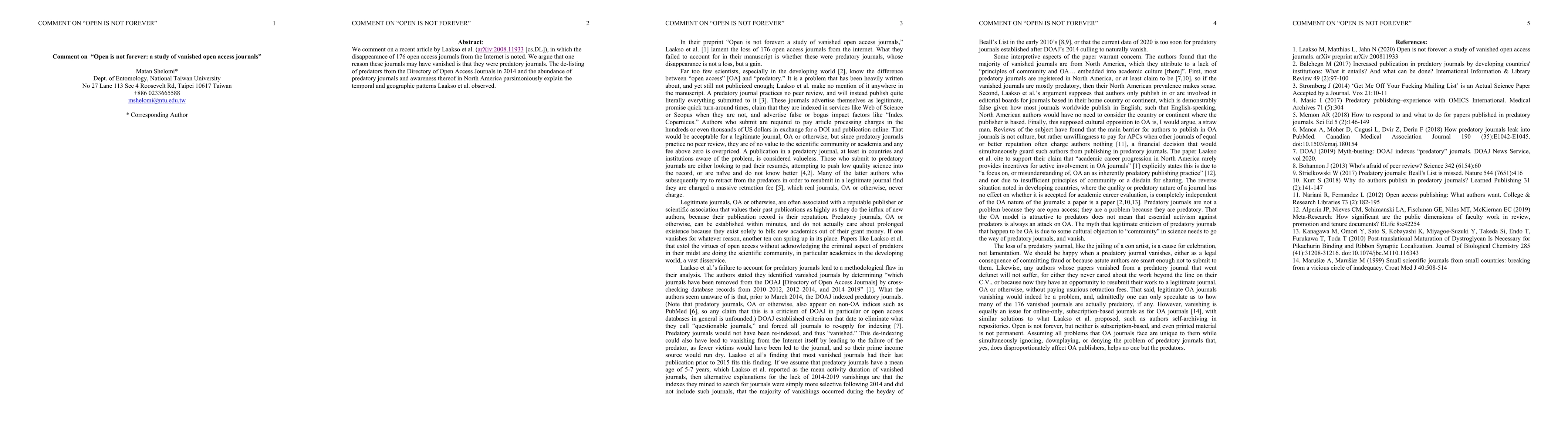 We comment on a recent article by Laakso et al. (arXiv:2008.11933 [cs.DL]), in which the disappearance of 176 open access journals from the Internet is noted. We argue that one reason these journals may have vanished is that they were predatory journals. The de-listing of predators from the Directory of Open Access Journals in 2014 and the abundance of predatory journals and awareness thereof in North America parsimoniously explain the temporal and geographic patterns Laakso et al. observed.