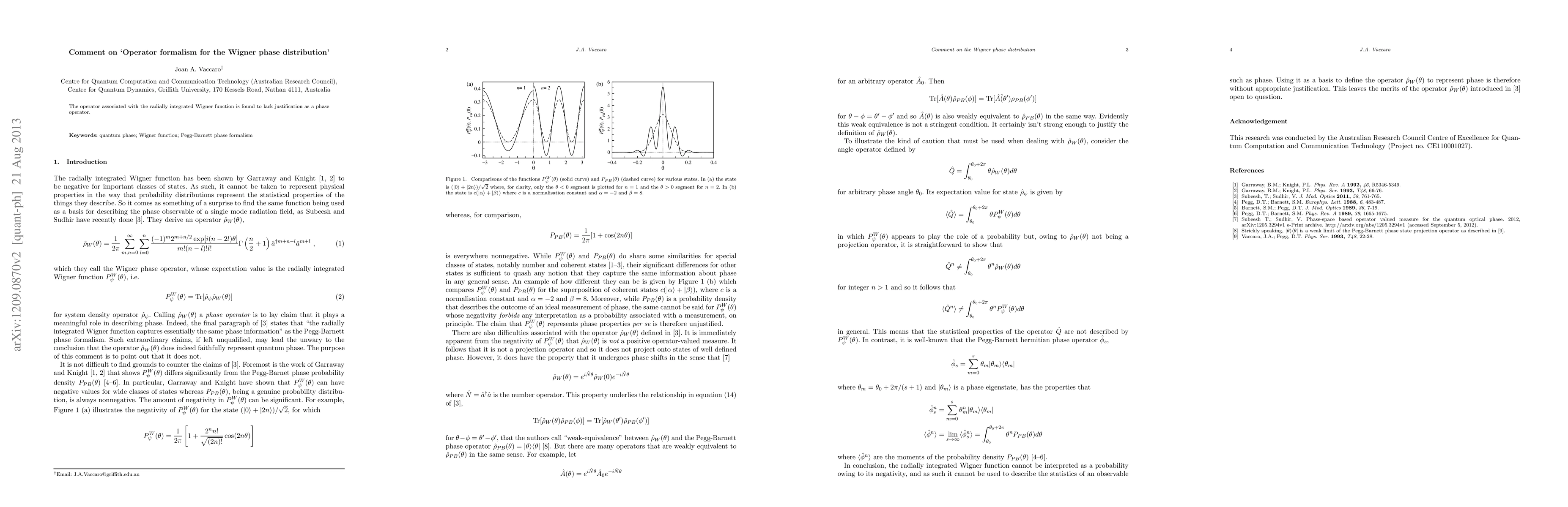 The operator associated with the radially integrated Wigner function is found to lack justification as a phase operator.