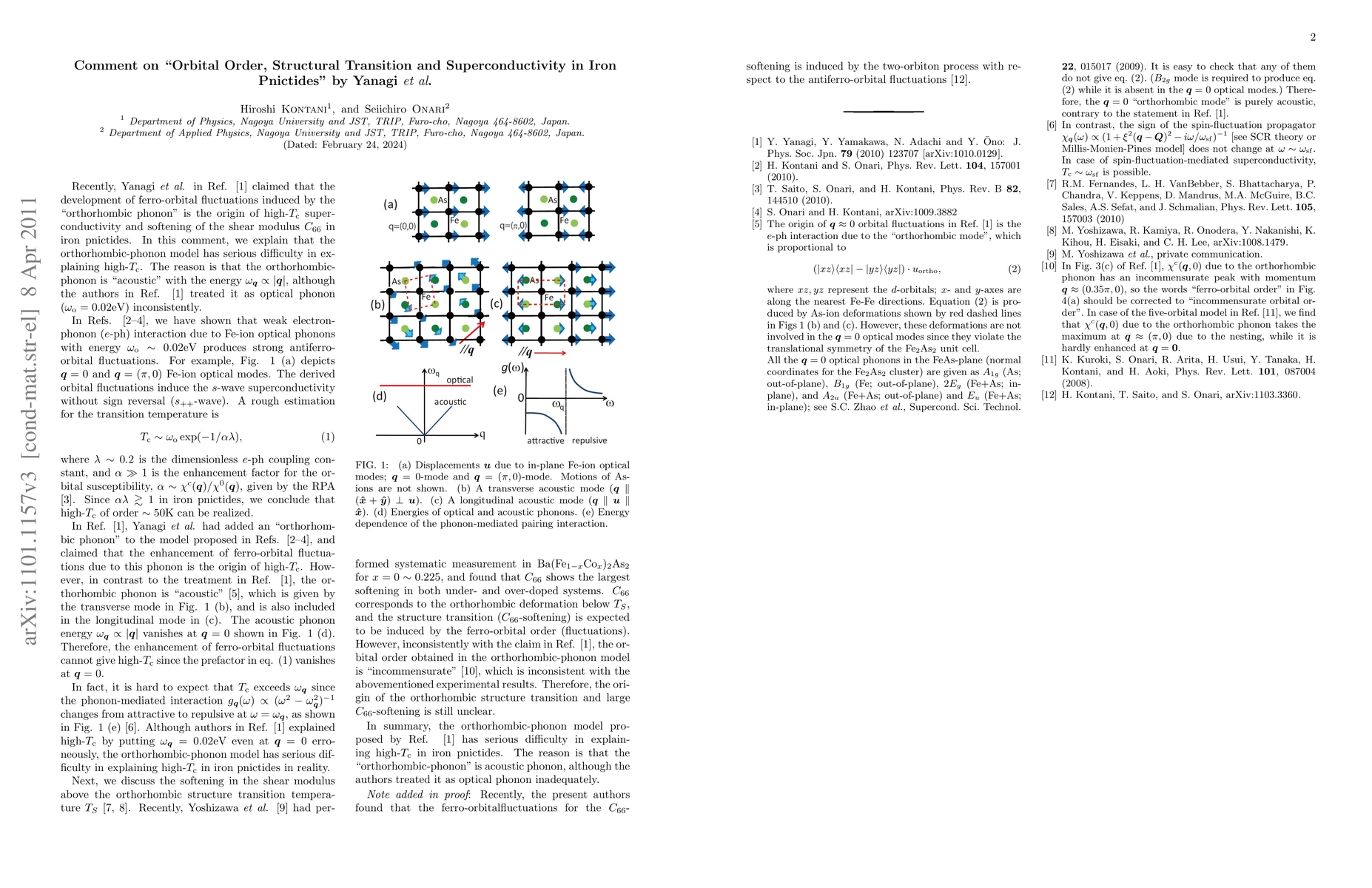 Summary: Yanagi et al.'s claim that high-Tc superconductivity in iron pnictides is linked to orbital fluctuations due to an "orthorhombic phonon" is contested. The critique argues that the phonon in question is actually acoustic, with energy scaling linearly with wavevector, contradicting the optical phonon model used by Yanagi et al.