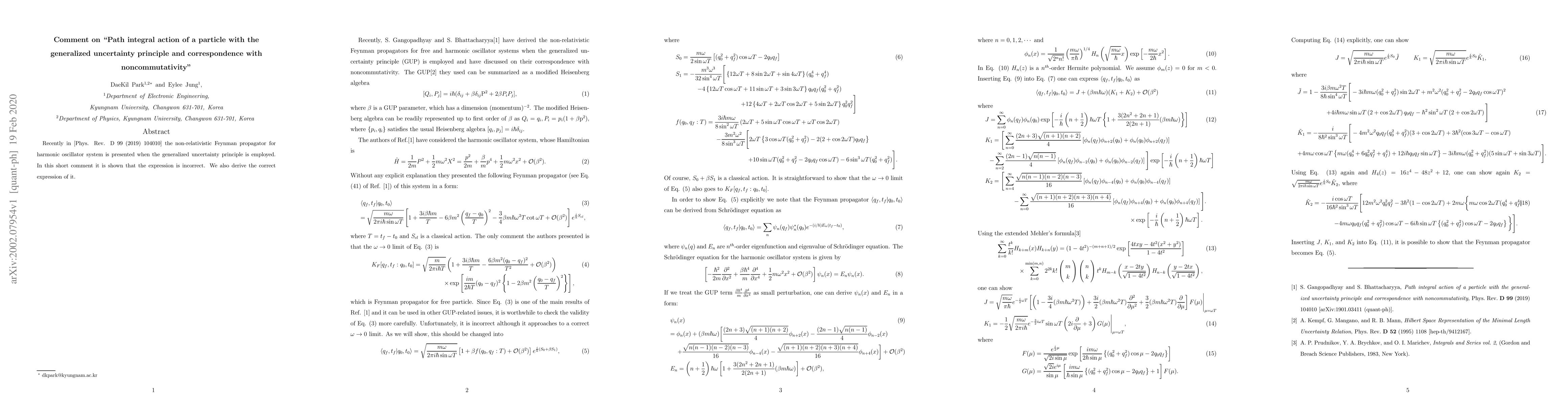 A study corrects a previously presented Feynman propagator for a harmonic oscillator with generalized uncertainty principle, providing the accurate expression instead.