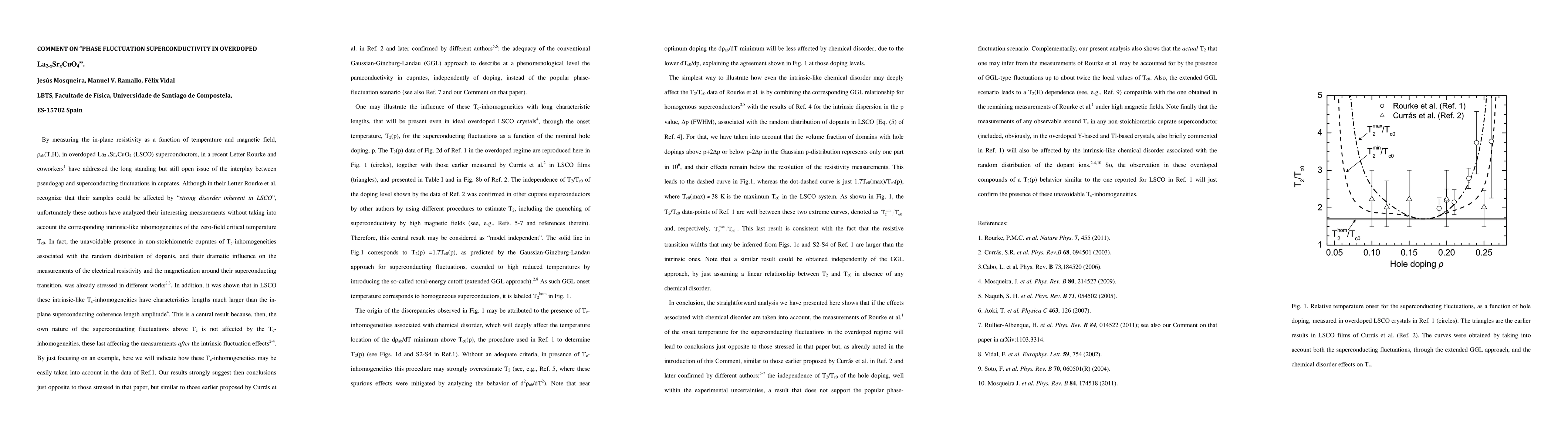 By measuring the in-plane resistivity as a function of temperature and magnetic field in overdoped La2-xSrxCuO4 (LSCO) superconductors, in a recent Letter Rourke et al. [Nature Physics 7, 455 (2011)] have addressed the long standing but still open issue of the interplay between pseudogap and superconducting fluctuations in cuprates. Unfortunately, these authors have analyzed their interesting measurements without taking into account the unavoidable inhomogeneities of the zero-field critical temperature Tc0 associated with the random distribution of the Sr ions, in spite of the different works on this issue in the same compounds. Here we will show that such a shortcoming invalidates most of the conclusions of Rourke et al.