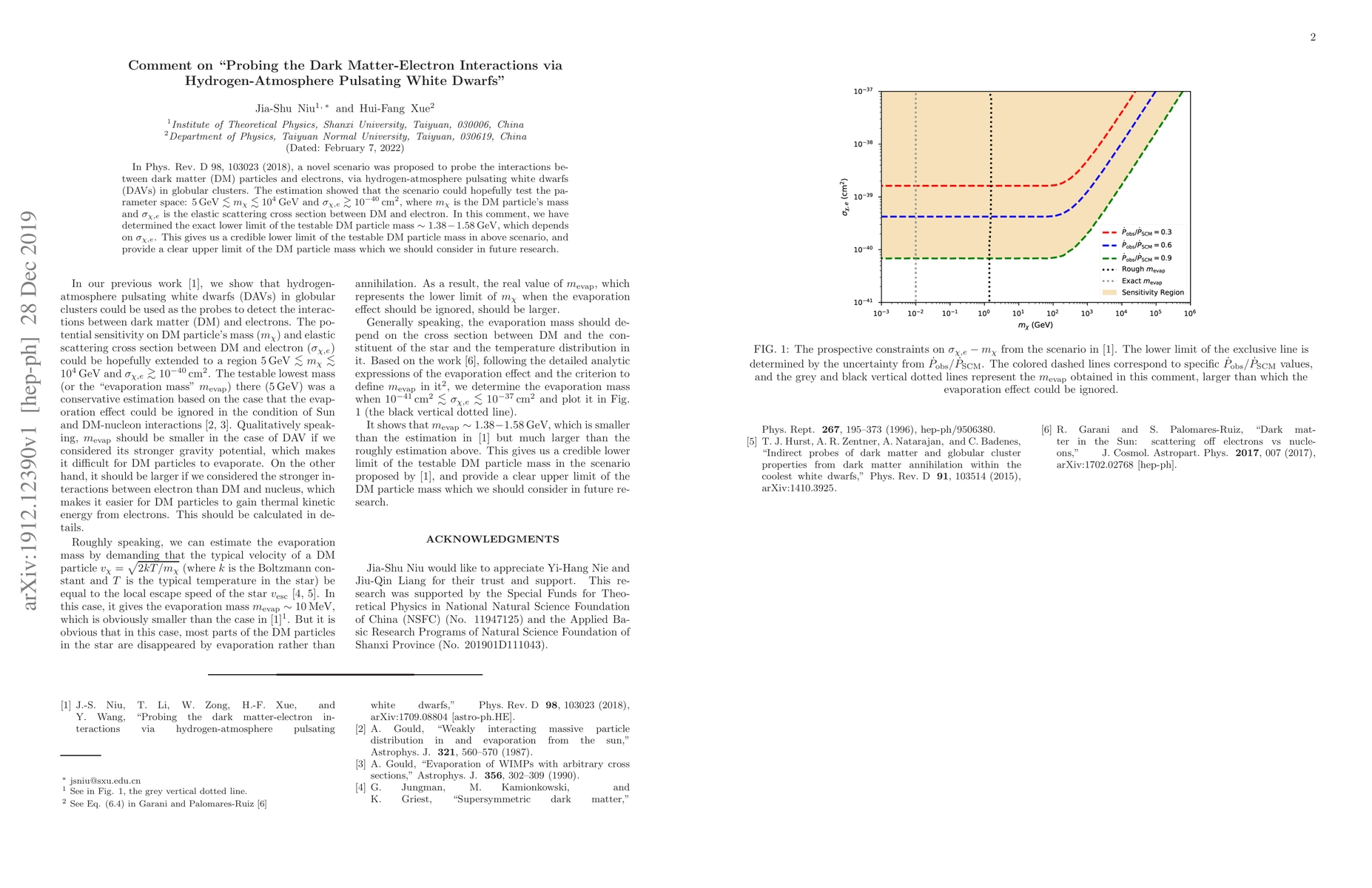 In Phys. Rev. D 98, 103023 (2018), a novel scenario was proposed to probe the interactions between dark matter (DM) particles and electrons, via hydrogen-atmosphere pulsating white dwarfs (DAVs) in globular clusters. The estimation showed that the scenario could hopefully test the parameter space: $5 \mathrm{GeV} \le m_{\chi} \le 10^{4} \mathrm{GeV}$ and $\sigma_{\chi,e} \ge 10^{-40} \mathrm{cm}^{2}$, where $m_{\chi}$ is the DM particle's mass and $\sigma_{\chi,e}$ is the elastic scattering cross section between DM and electron. In this comment, we have determined the exact lower limit of the testable DM particle mass $\sim 1.38 - 1.58 \mathrm{GeV}$, which depends on $\sigma_{\chi,e}$. This gives us a credible lower limit of the testable DM particle mass in above scenario, and provide a clear upper limit of the DM particle mass which we should consider in future research.