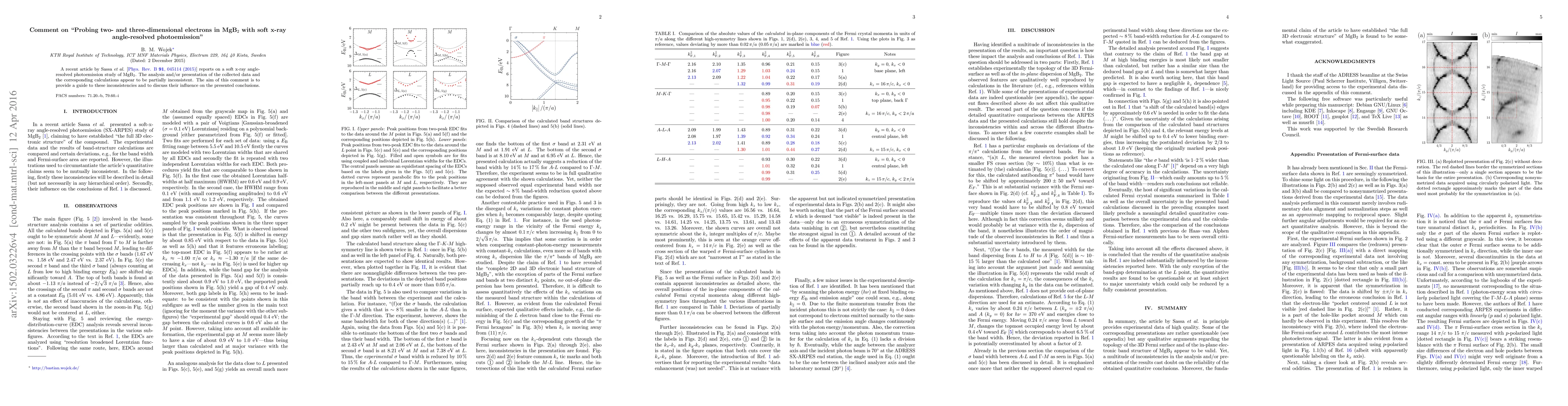 A recent article by Sassa et al. [Phys. Rev. B 91, 045114 (2015)] reports on a soft x-ray angle-resolved photoemission study of MgB2. The analysis and/or presentation of the collected data and the corresponding calculations appear to be partially inconsistent. The aim of this comment is to provide a guide to these inconsistencies and to discuss their influence on the presented conclusions.