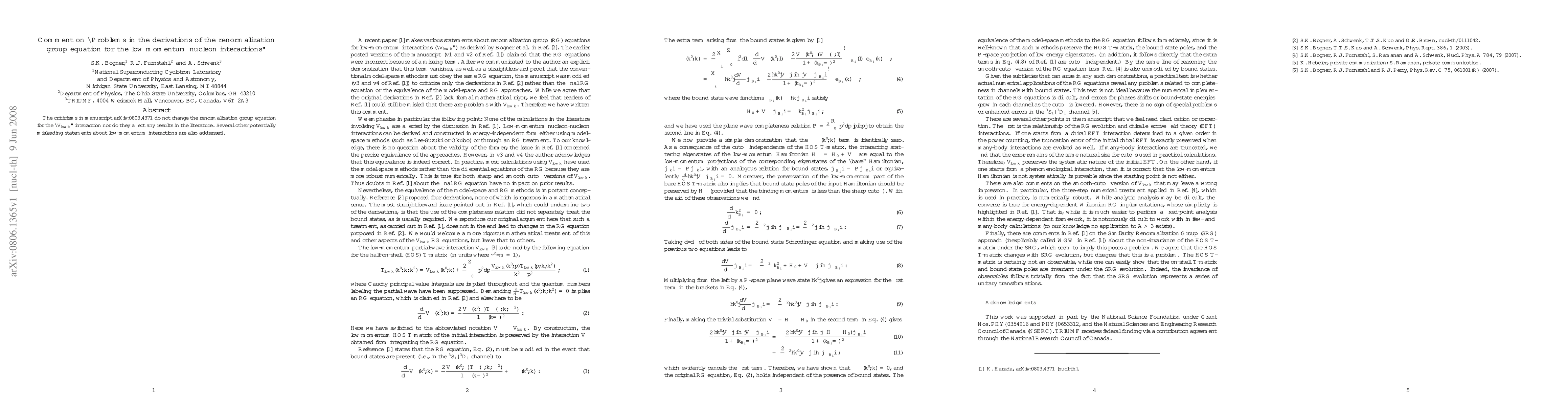 The criticisms in manuscript arXiv:0803.4371 do not change the renormalization group equation for the "$\vlowk$" interaction nor do they affect any results in the literature. Several other potentially misleading statements about low-momentum interactions are also addressed.