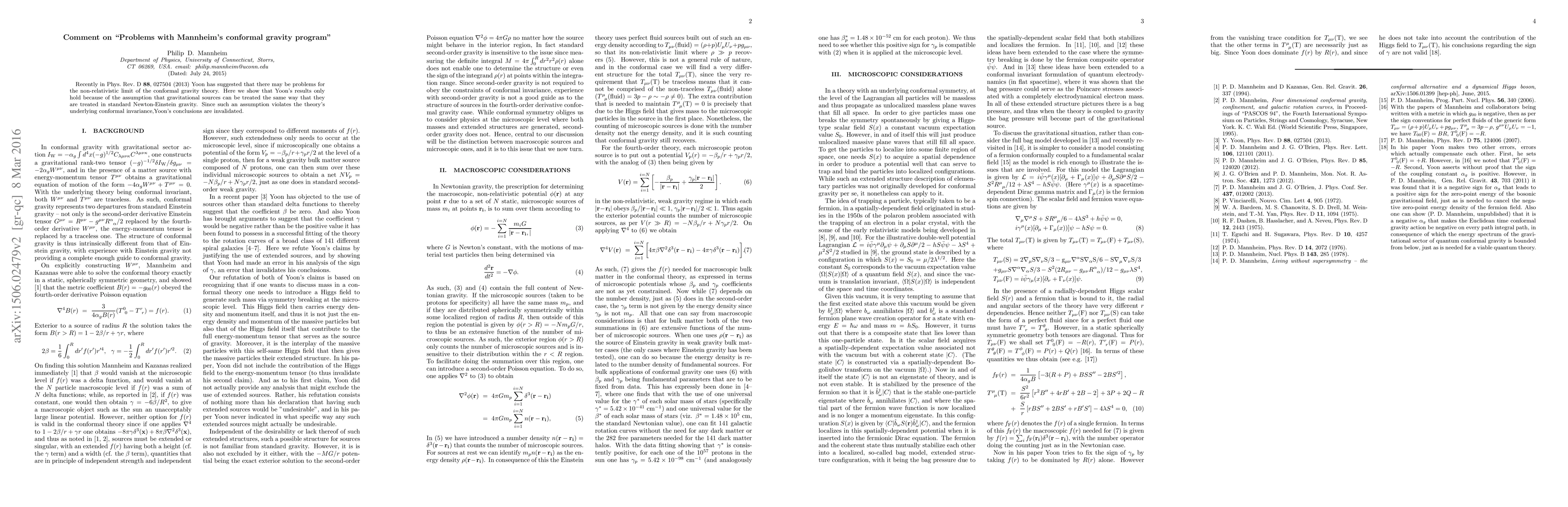 This paper refutes Yoon's critique of conformal gravity's non-relativistic limit, arguing that Yoon's conclusions are invalid because they rely on treating gravitational sources as in Newtonian gravity, which violates conformal gravity's inherent conformal invariance.