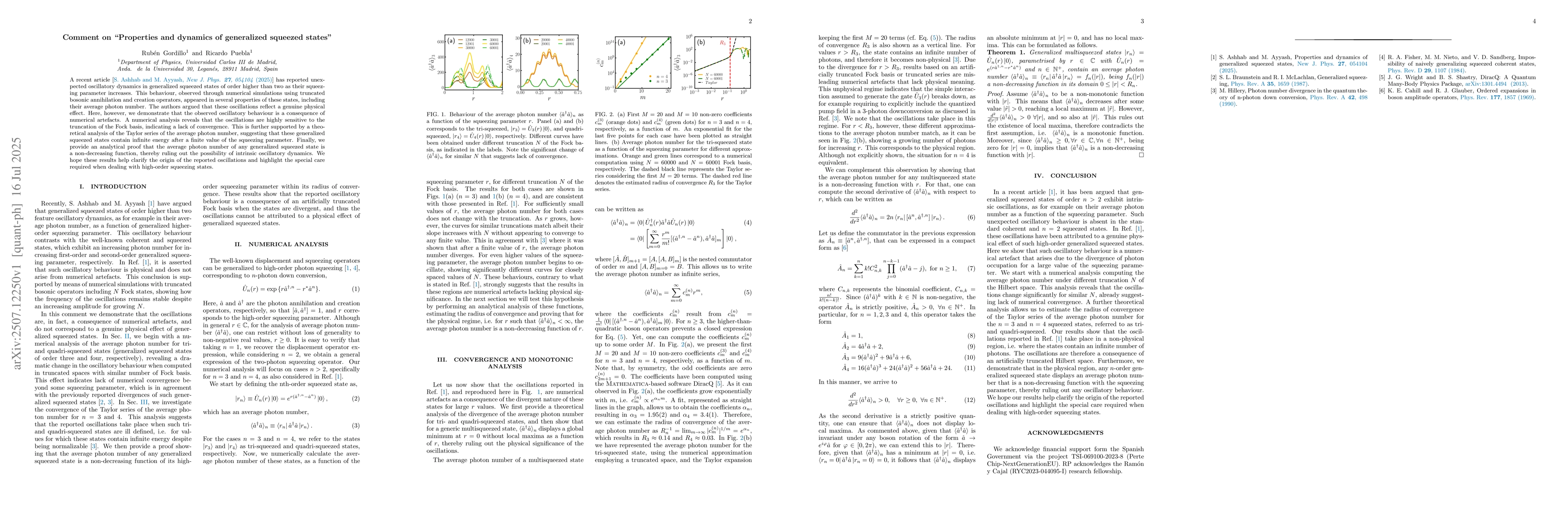 A recent article [S. Ashhab and M. Ayyash, New J. Phys. 27, 054104 (2025)] has reported unexpected oscillatory dynamics in generalized squeezed states of order higher than two as their squeezing parameter increases. This behaviour, observed through numerical simulations using truncated bosonic annihilation and creation operators, appeared in several properties of these states, including their average photon number. The authors argued that these oscillations reflect a genuine physical effect. Here, however, we demonstrate that the observed oscillatory behaviour is a consequence of numerical artefacts. A numerical analysis reveals that the oscillations are highly sensitive to the truncation of the Fock basis, indicating a lack of convergence. This is further supported by a theoretical analysis of the Taylor series of the average photon number, suggesting that these generalized squeezed states contain infinite energy after a finite value of the squeezing parameter. Finally, we provide an analytical proof that the average photon number of any generalized squeezed state is a non-decreasing function, thereby ruling out the possibility of intrinsic oscillatory dynamics. We hope these results help clarify the origin of the reported oscillations and highlight the special care required when dealing with high-order squeezing states.