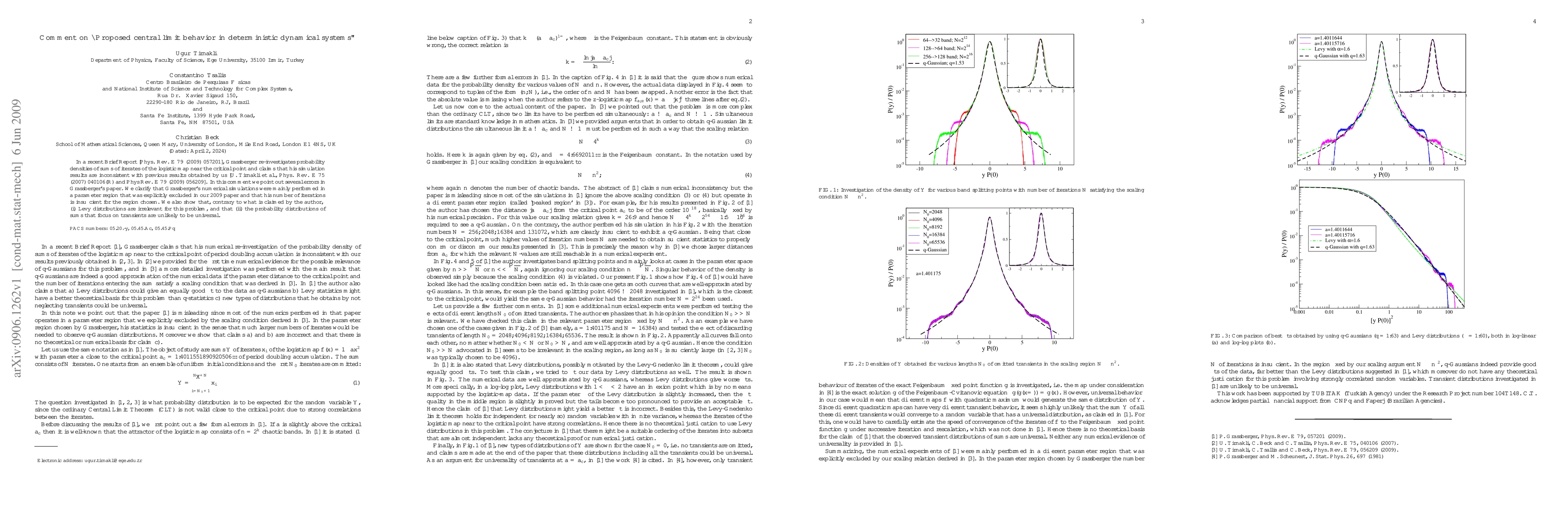 In a recent Brief Report [Phys. Rev. E 79 (2009) 057201], Grassberger re-investigates probability densities of sums of iterates of the logistic map near the critical point and claims that his simulation results are inconsistent with previous results obtained by us [U. Tirnakli et al., Phys. Rev. E 75 (2007) 040106(R) and Phys Rev. E 79 (2009) 056209]. In this comment we point out several errors in Grassberger's paper. We clarify that Grassberger's numerical simulations were mainly performed in a parameter region that was explicitly excluded in our 2009 paper and that his number of iterations is insufficient for the region chosen. We also show that, contrary to what is claimed by the author, (i) Levy distributions are irrelevant for this problem, and that (ii) the probability distributions of sums that focus on transients are unlikely to be universal.
