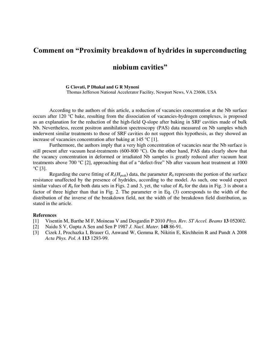 This paper discusses the proximity effect leading to the breakdown of hydrides in superconducting niobium cavities, emphasizing the implications for the stability and functionality of these materials in high-energy physics applications. It critiques the original findings and proposes alternative explanations for the observed phenomena.