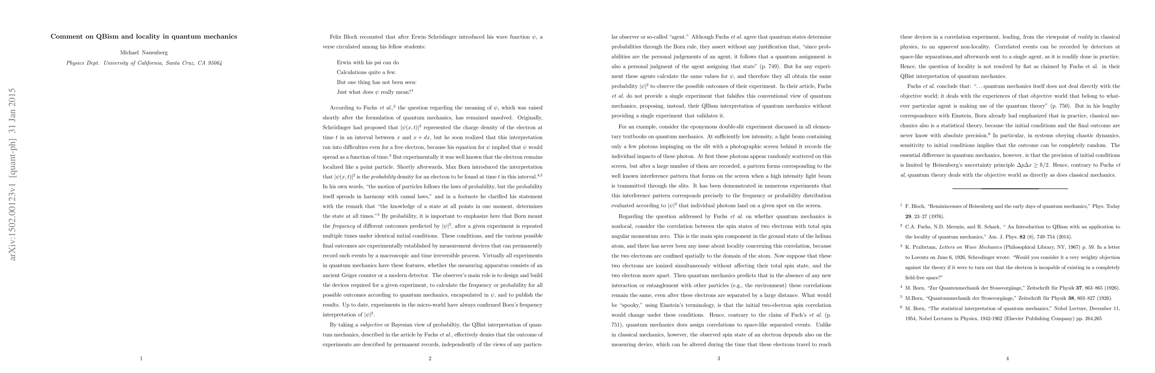 This paper critiques the QBism interpretation of quantum mechanics proposed by Fuchs, Mermin, and Schack, focusing on its implications for the concept of locality. It argues against the idea that QBism provides a satisfactory resolution to the locality problem in quantum mechanics.
