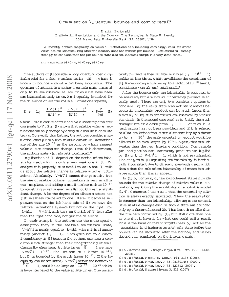 A recent paper found that a key inequality does not restrict pre-bounce fluctuations strongly enough to conclude a semiclassical state existed before the bounce, leaving room for uncertainty about the nature of the pre-bounce state.