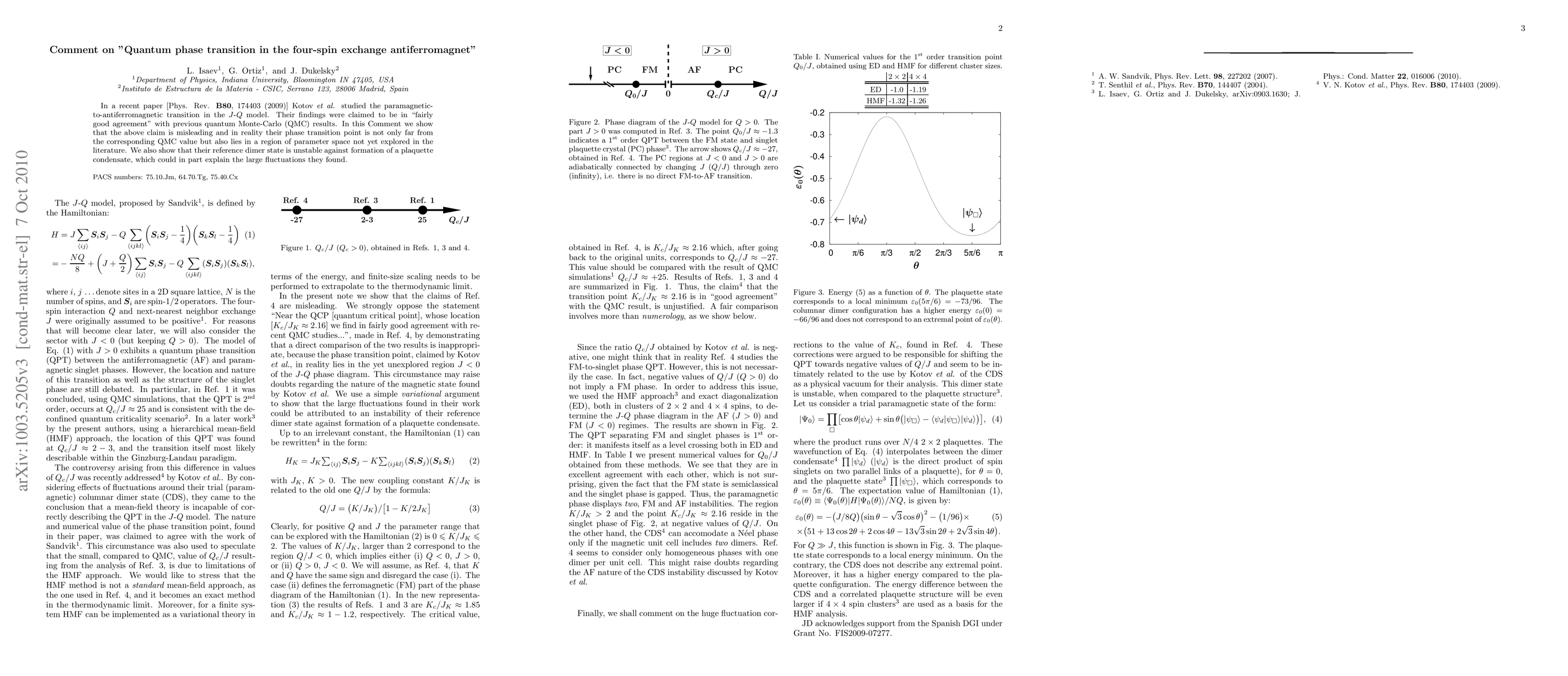 In a recent paper [Phys. Rev. {\bf B80}, 174403 (2009)] Kotov {\it et al.} studied the paramagnetic-to-antiferromagnetic transition in the $J$-$Q$ model. Their findings were claimed to be in "fairly good agreement" with previous quantum Monte-Carlo (QMC) results. In this Comment we show that the above claim is misleading and in reality their phase transition point is not only far from the corresponding QMC value but also lies in a region of parameter space not yet explored in the literature. We also show that their reference dimer state is unstable against formation of a plaquette condensate, which could in part explain the large fluctuations they found.
