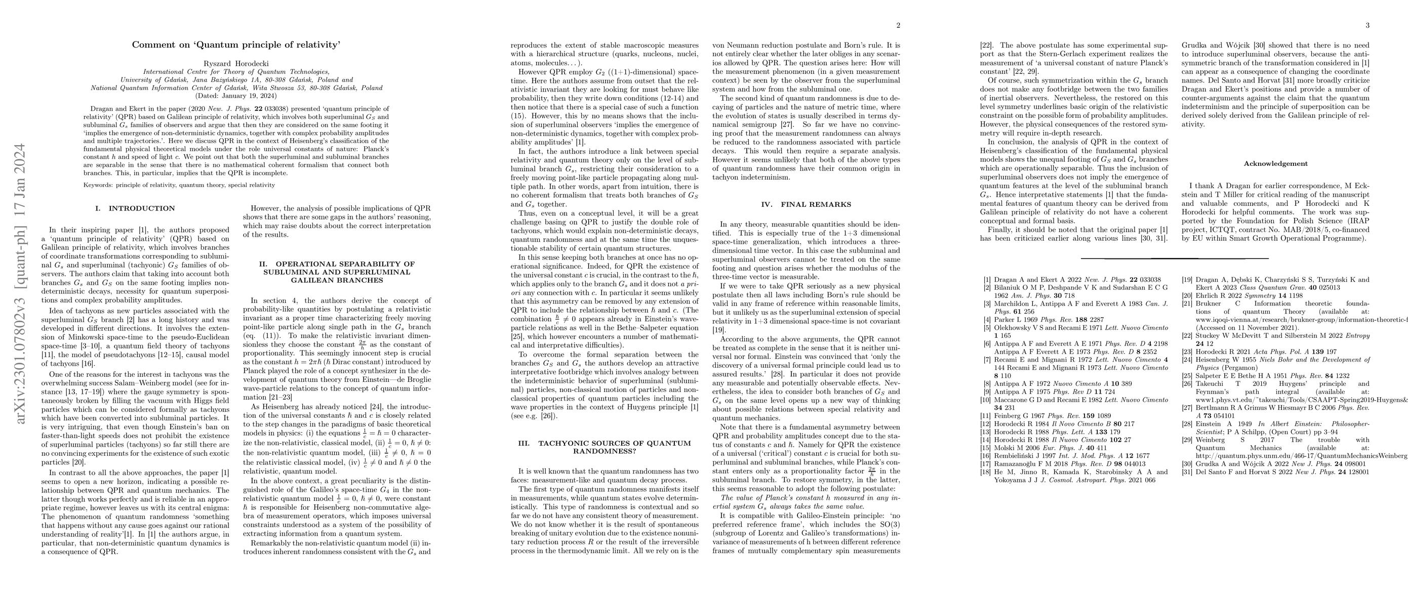 This paper critiques Dragan and Ekert's 'quantum principle of relativity' (QPR), arguing that it introduces non-deterministic dynamics and multiple trajectories without a coherent mathematical framework connecting superluminal and subluminal observers. The authors conclude that QPR is incomplete due to the lack of a unifying formalism.