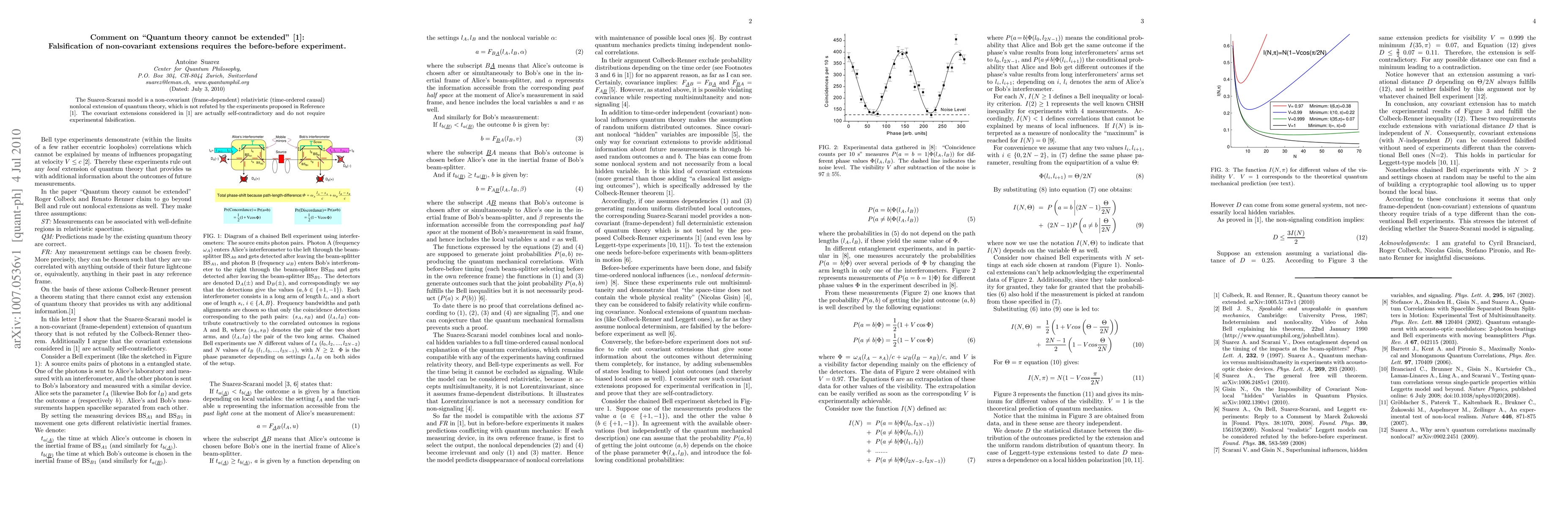 The Suarez-Scarani model is a non-covariant (frame-dependent) relativistic (time-ordered causal) nonlocal extension of quantum theory, which is not refuted by the experiments proposed in Reference [arXiv:1005.5173v1]. The covariant extensions considered in this Reference are actually self-contradictory and do not require experimental falsification.