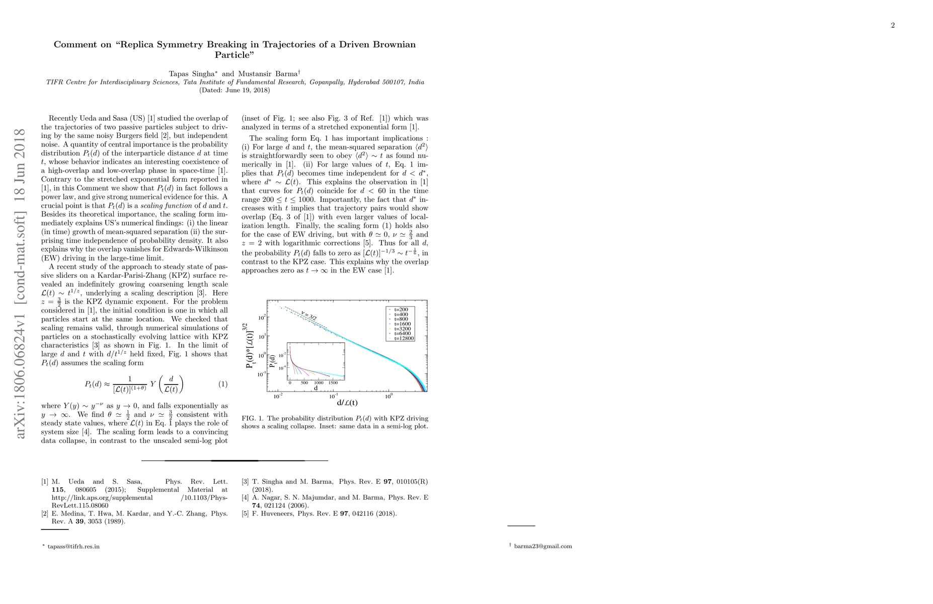 We comment on a Letter [Phys. Rev. Lett. 115, 080605 (2015), arXiv:1411.1816] "Replica symmetry breaking in trajectories of a driven Brownian particle" and author reply [arXiv:1805.10474]