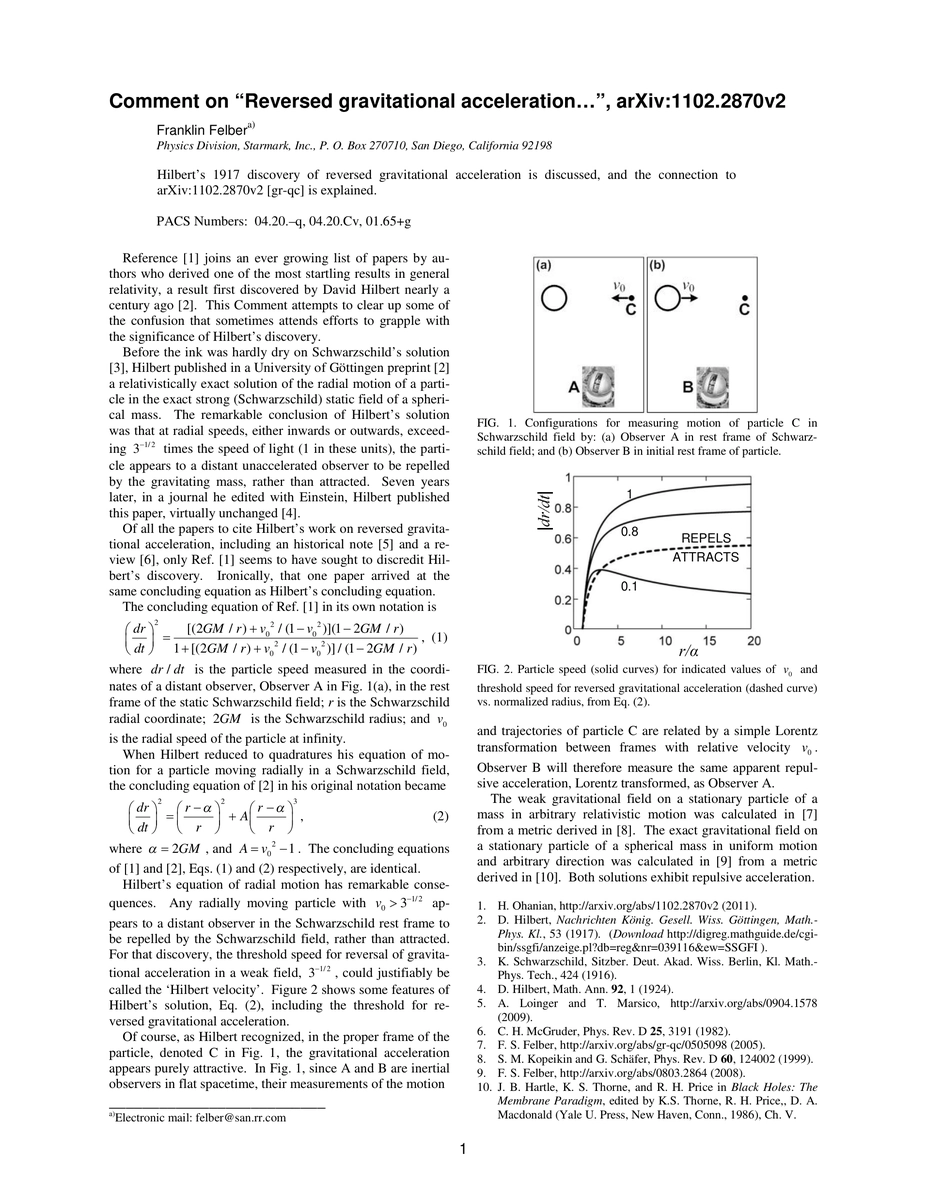 Hilbert's 1917 discovery of reversed gravitational acceleration is discussed, and the connection to arXiv:1102.2870v2 [gr-qc] is explained.